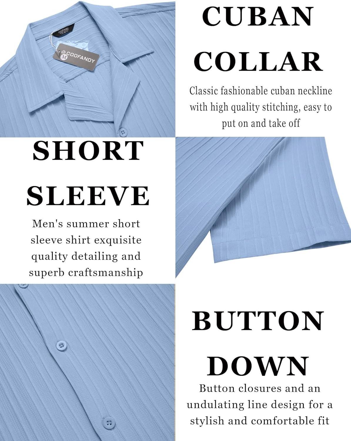 COOFANDY Men's Casual Shirts Short Sleeve Button Down Shirts Fashion Textured Summer Beach Shirt(Blue)