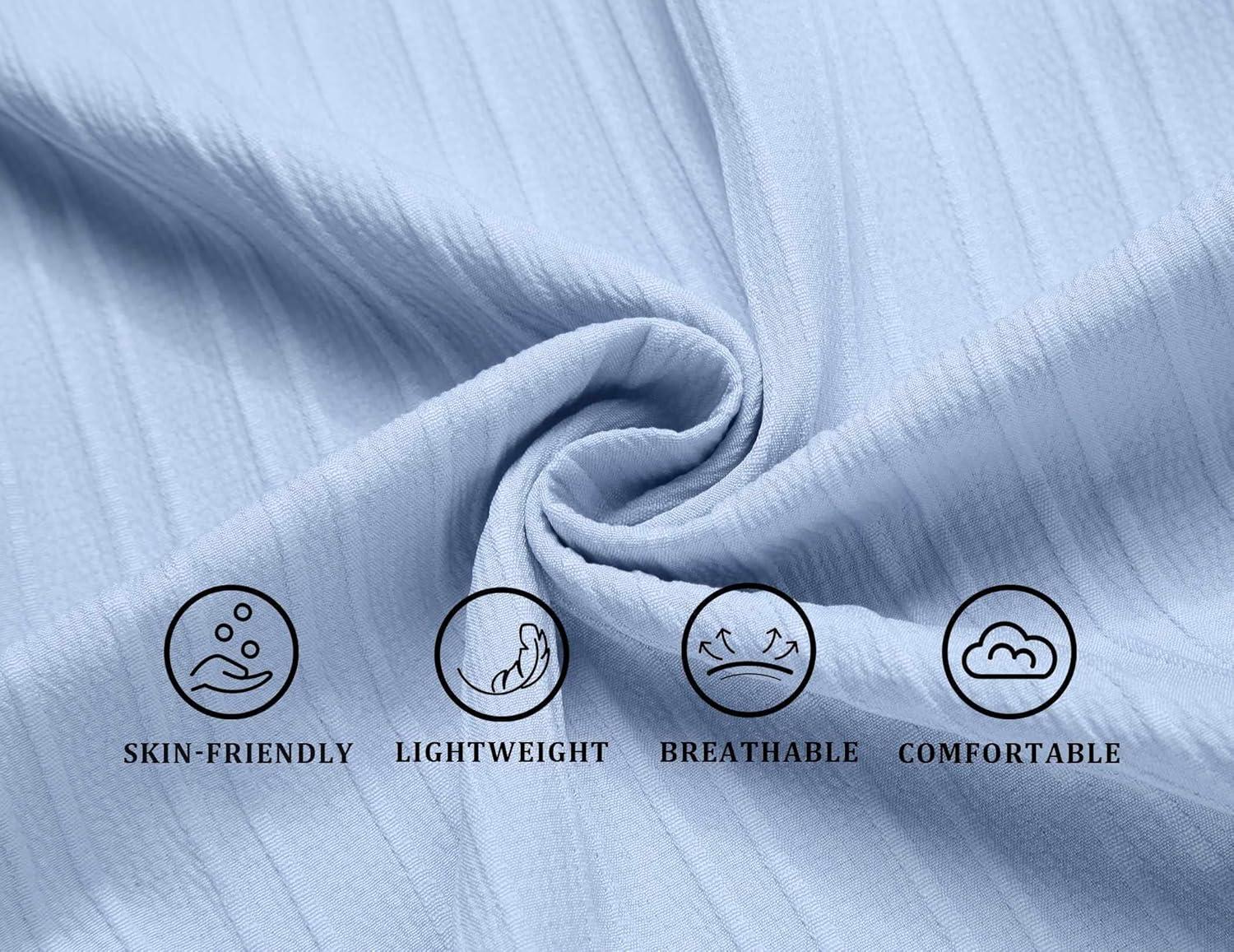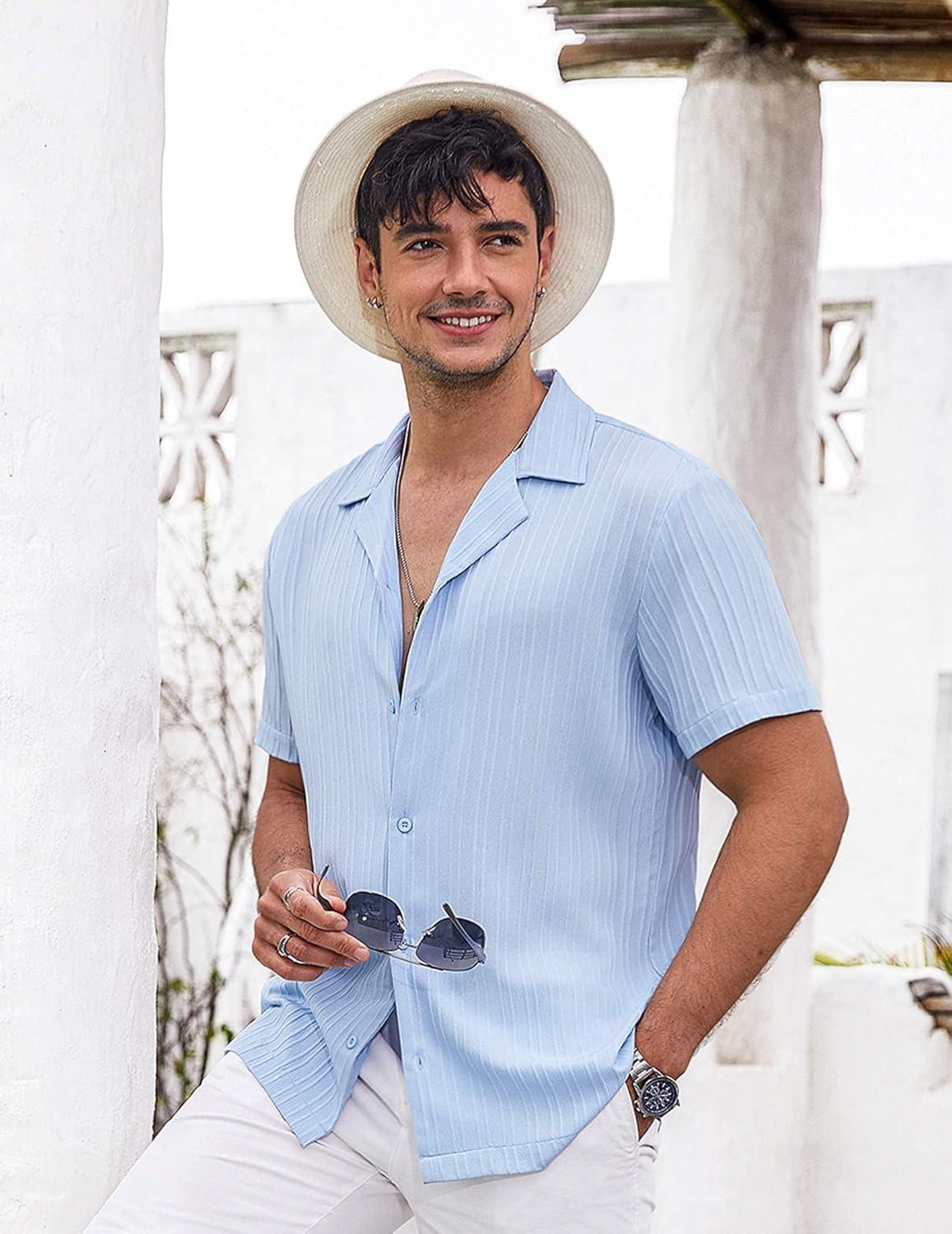 COOFANDY Men’s Casual Shirts Short Sleeve Button Down Shirts Fashion Textured Summer Beach Shirt(Light Blue)