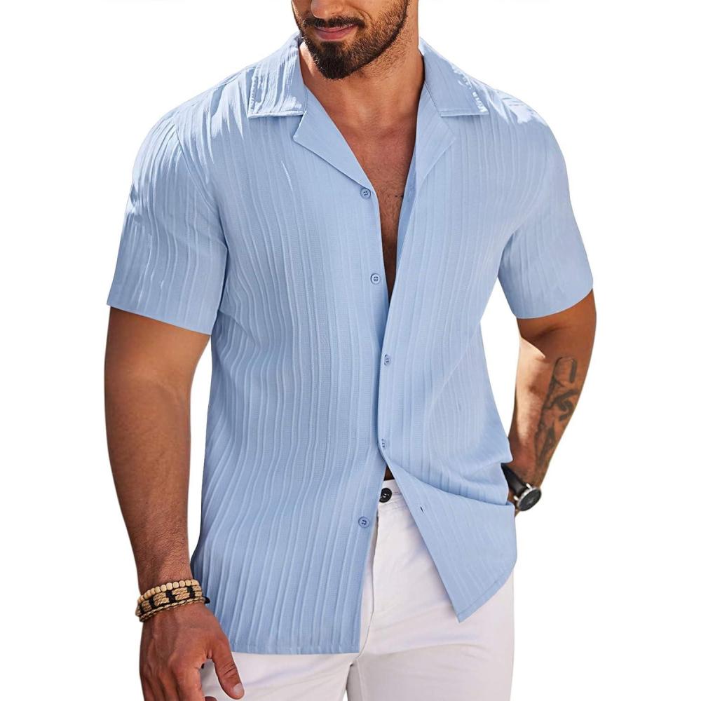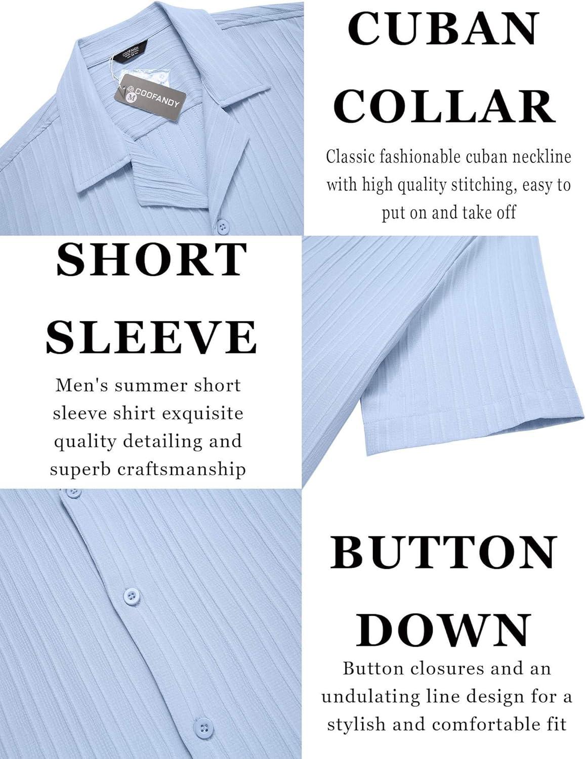 COOFANDY Men's Casual Shirts Short Sleeve Button Down Shirts Fashion Textured Summer Beach Shirt(Light Blue)