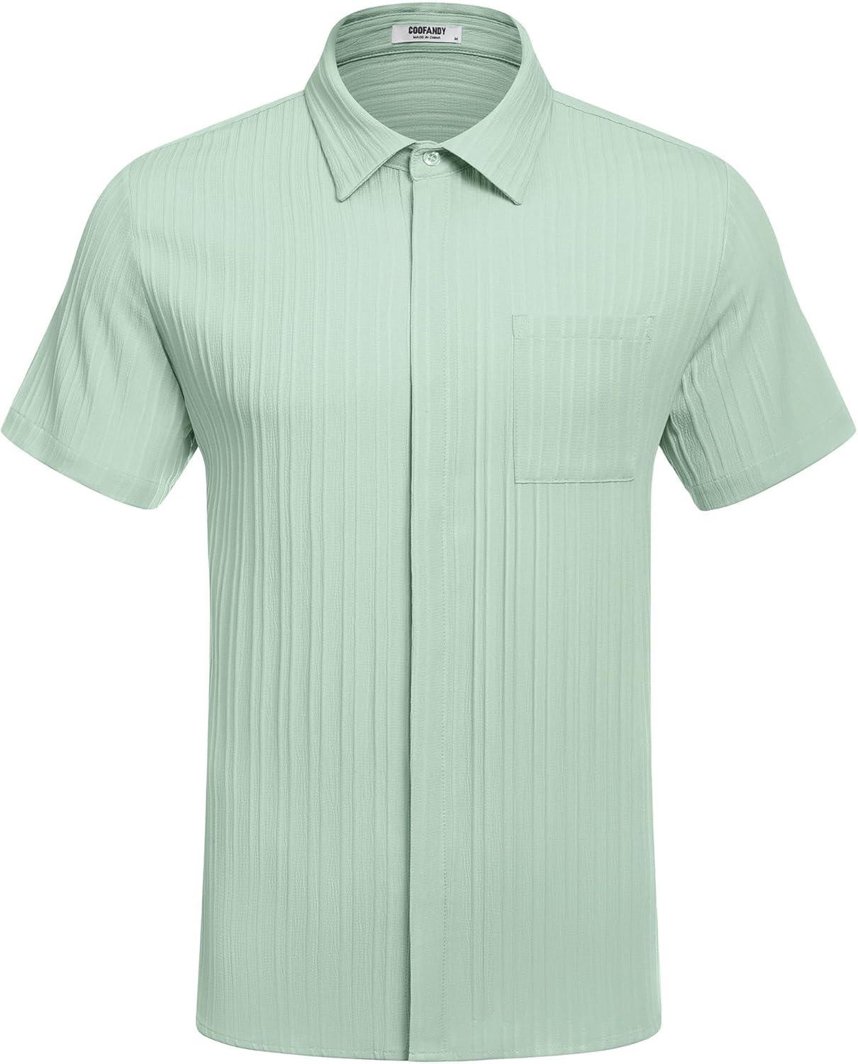 COOFANDY Mens Casual Shirts Short Sleeve Button Down Shirts Fashion Textured Summer Beach Shirt(Light Green)