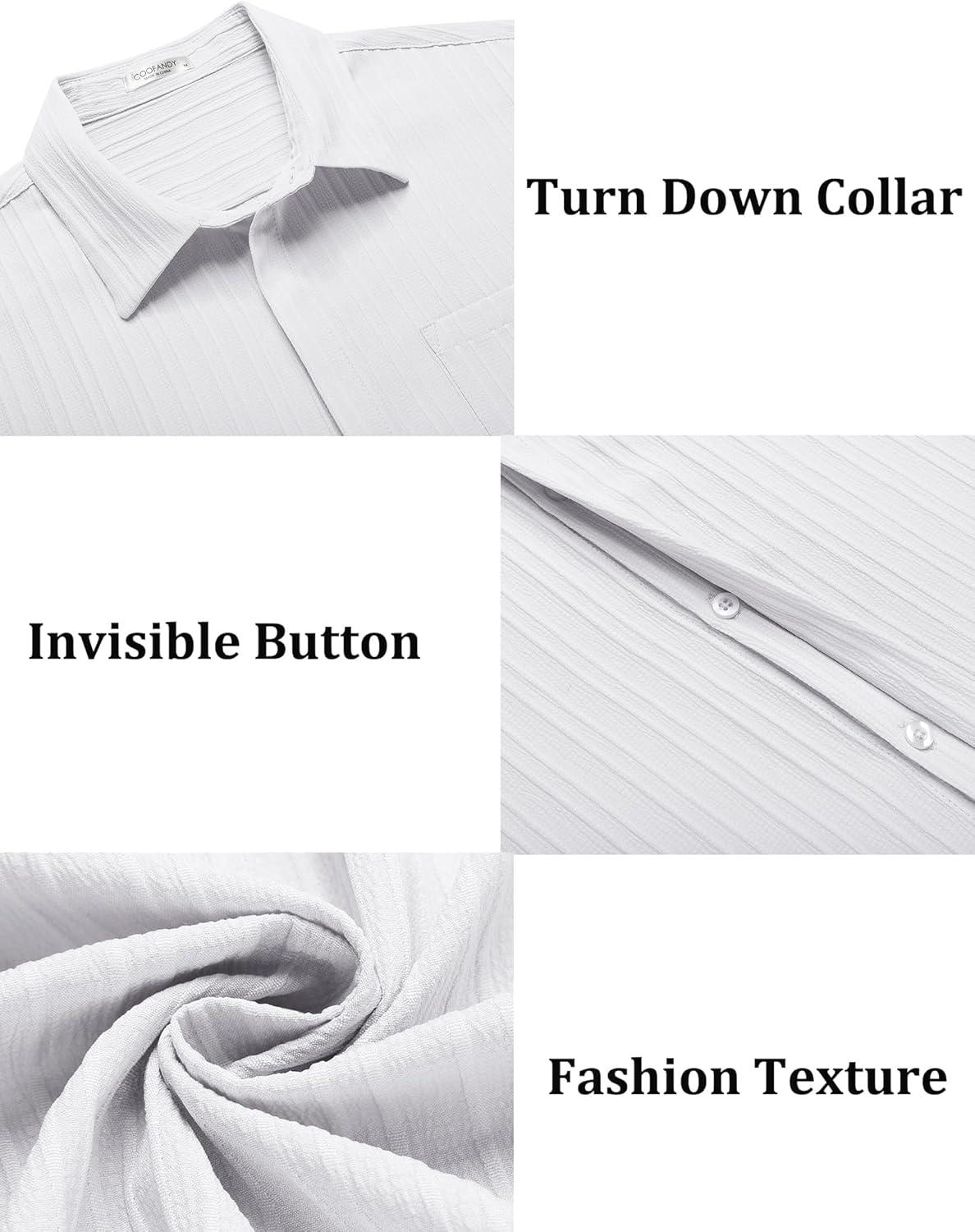 imageCOOFANDY Mens Casual Shirts Short Sleeve Button Down Shirts Fashion Textured Summer Beach ShirtWhite