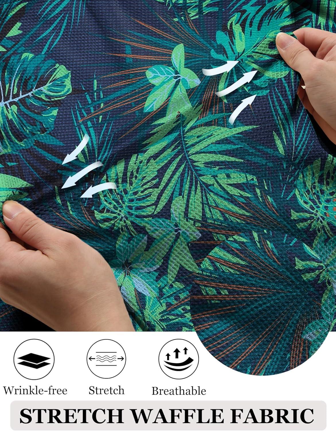 COOFANDY Men's Casual Shirts Short Sleeve Waffle Knit Button Down Shirt Wrinkle Free Summer Beach Tops(Green Leaves)