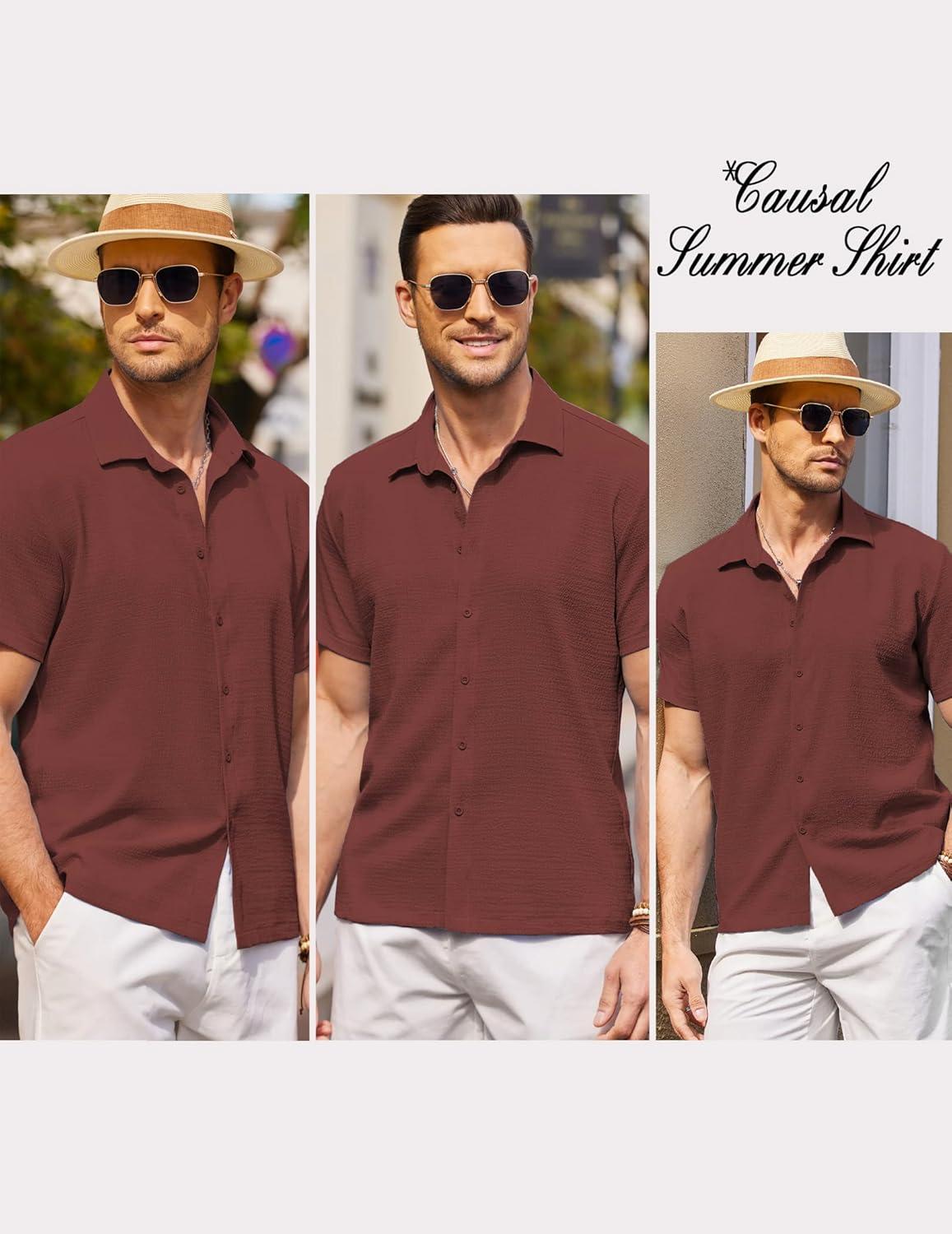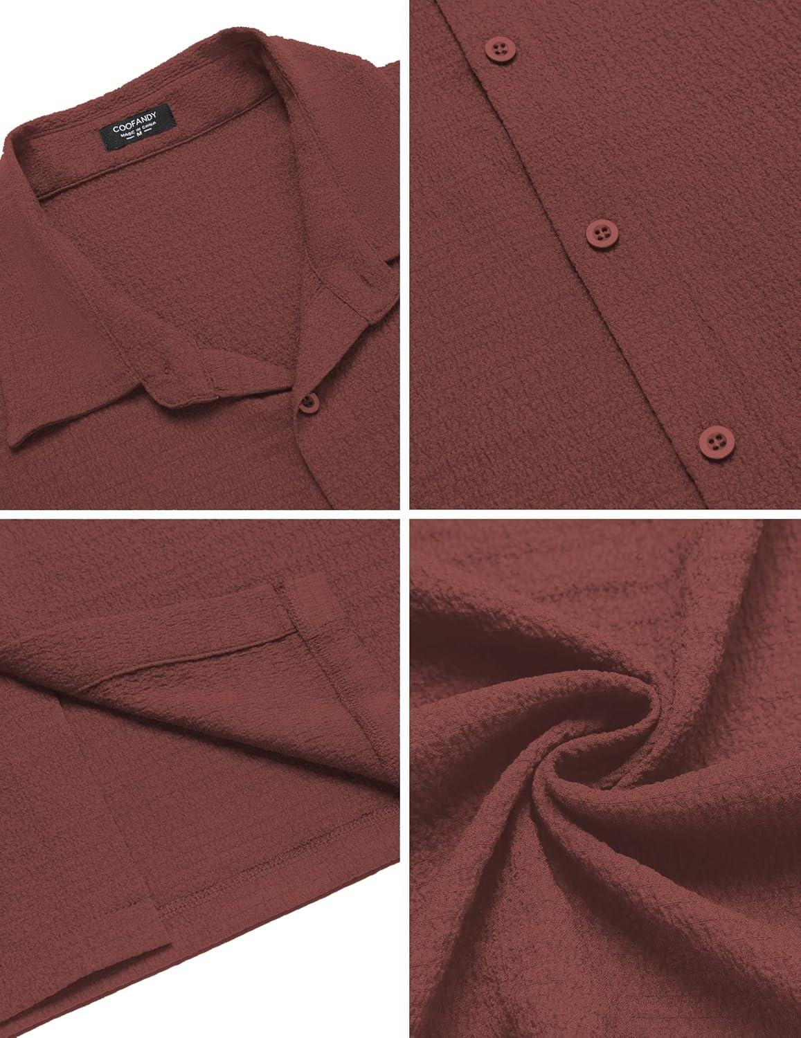 COOFANDY Men's Casual Short Sleeve Button Down Shirt Textured Summer Beach Shirt(Coffee)