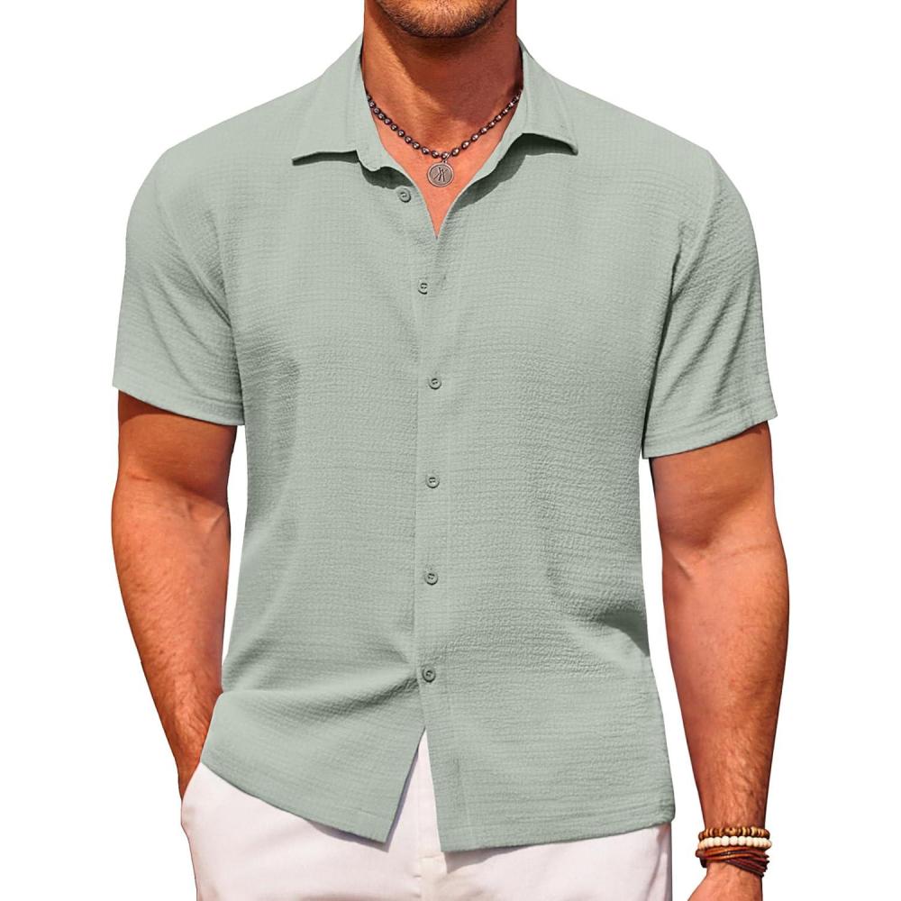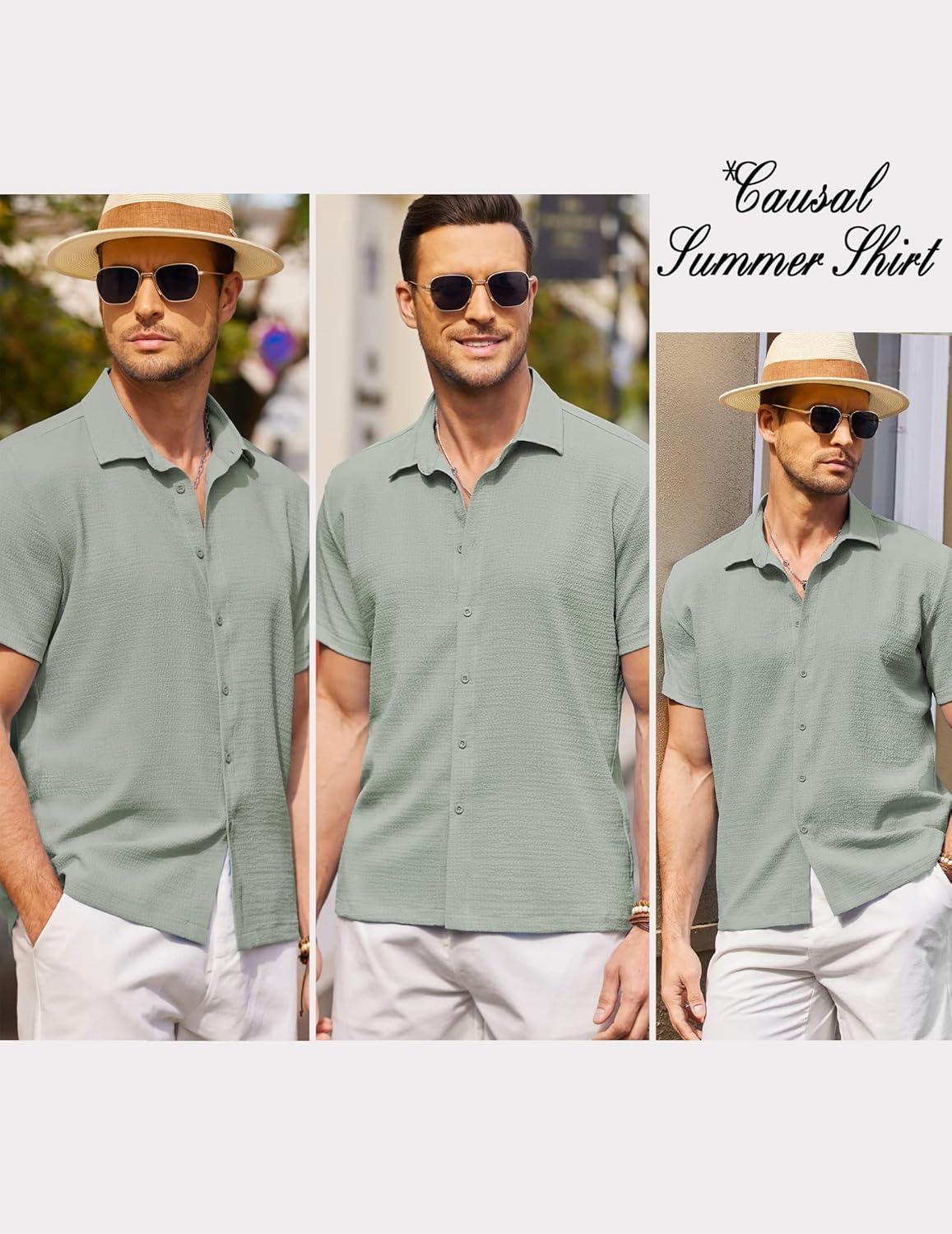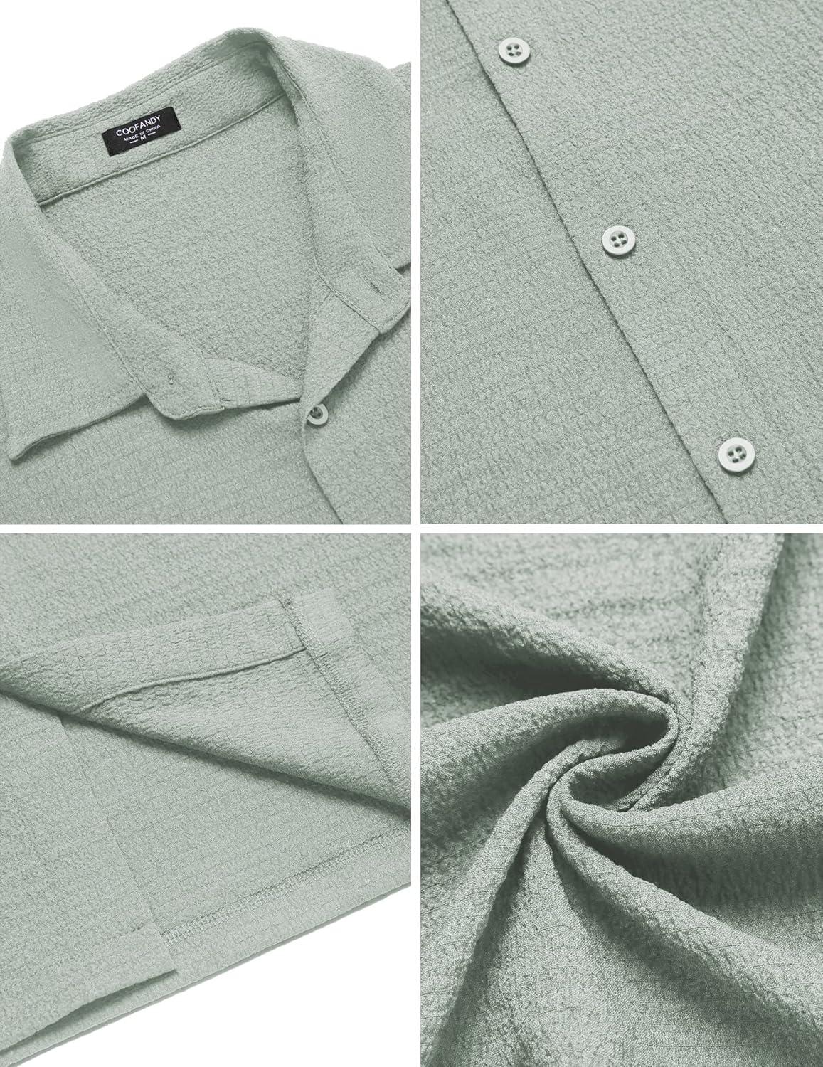 COOFANDY Men's Casual Short Sleeve Button Down Shirt Textured Summer Beach Shirt(Light Green)