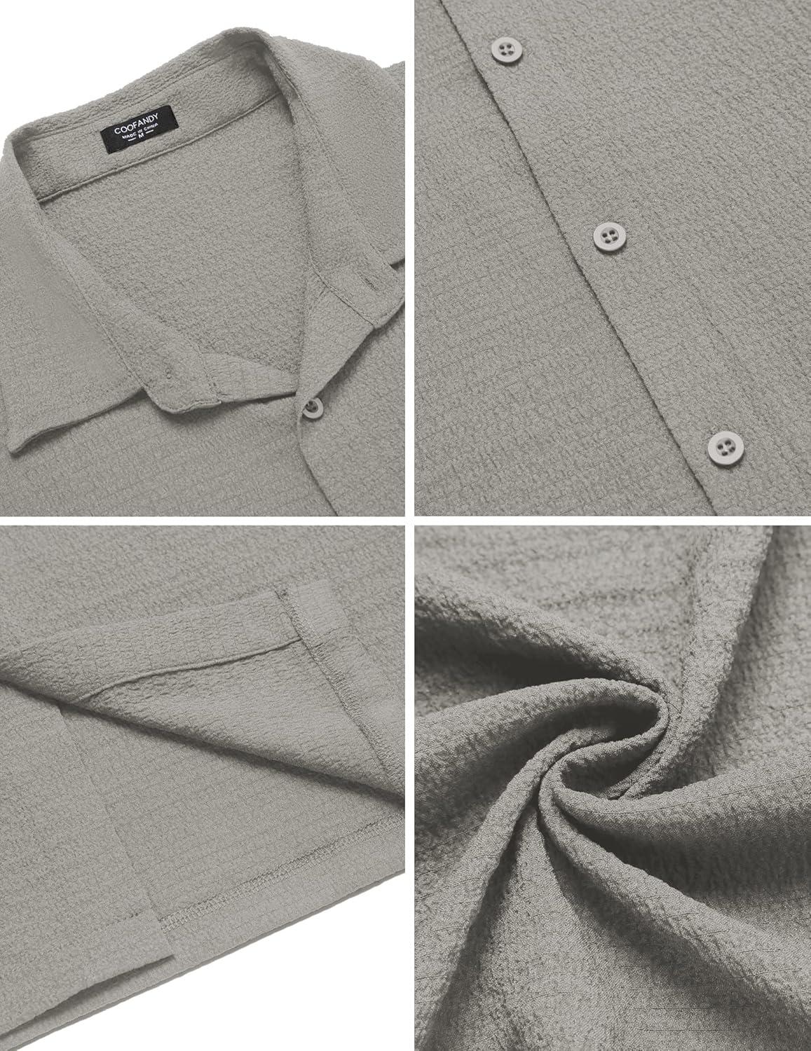 COOFANDY Men's Casual Short Sleeve Button Down Shirt Textured Summer Beach Shirt(Light Grey)