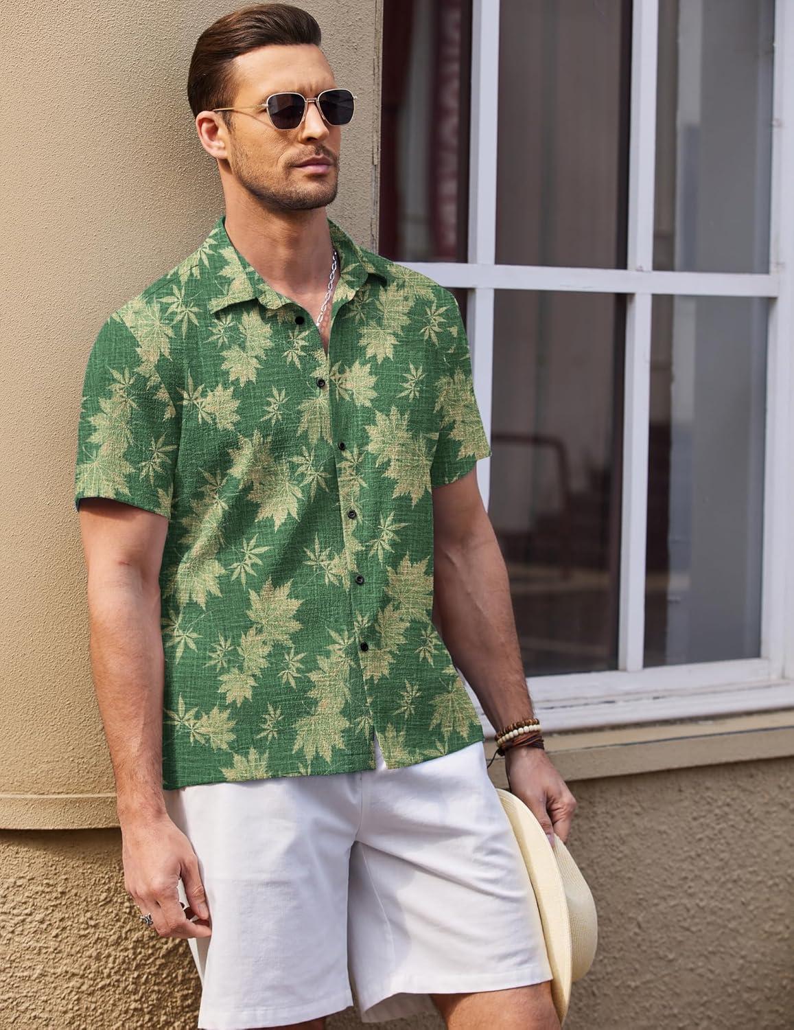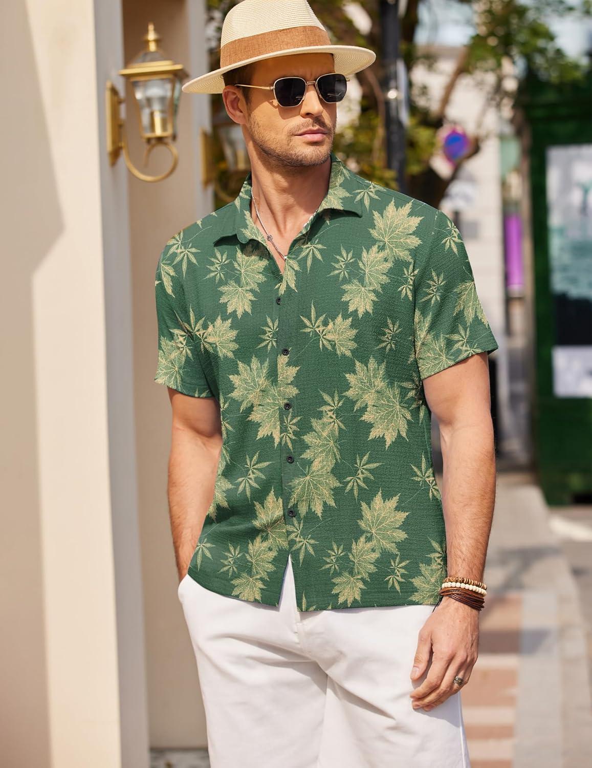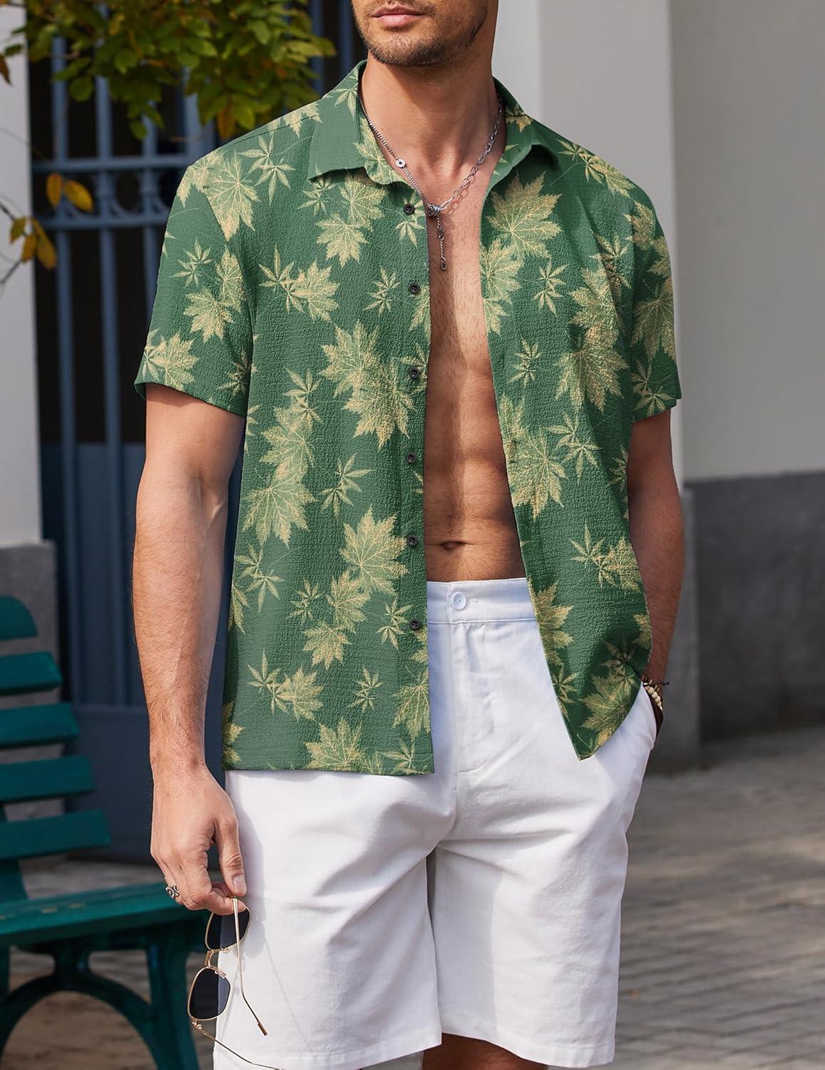 Don’t miss out on our limited-time offer: buy COOFANDY Men’s Casual Short Sleeve Button Down Shirt Textured Summer Beach Shirt(Printed-dark Green), get {accessory} free!