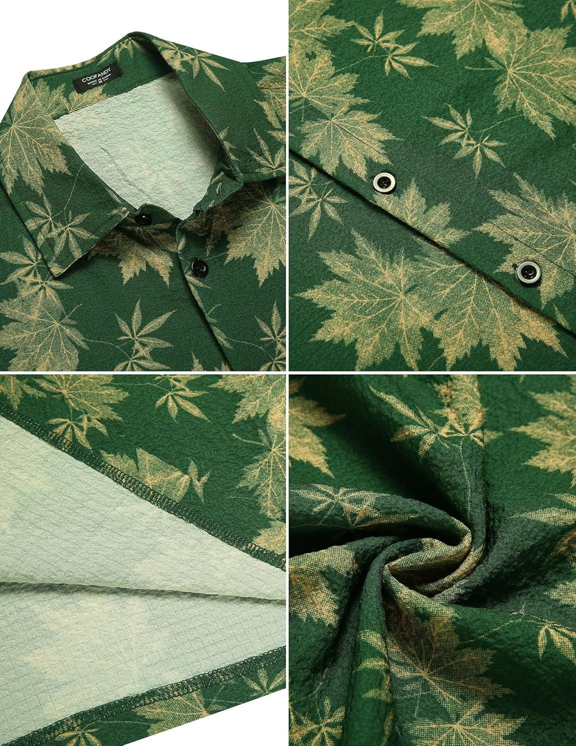 COOFANDY Men's Casual Short Sleeve Button Down Shirt Textured Summer Beach Shirt(Printed-dark Green)
