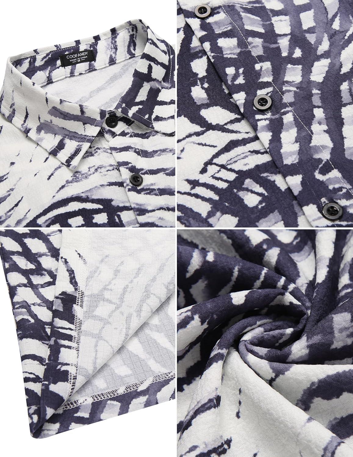 COOFANDY Men's Casual Short Sleeve Button Down Shirt Textured Summer Beach Shirt(Printed-palm Tree)