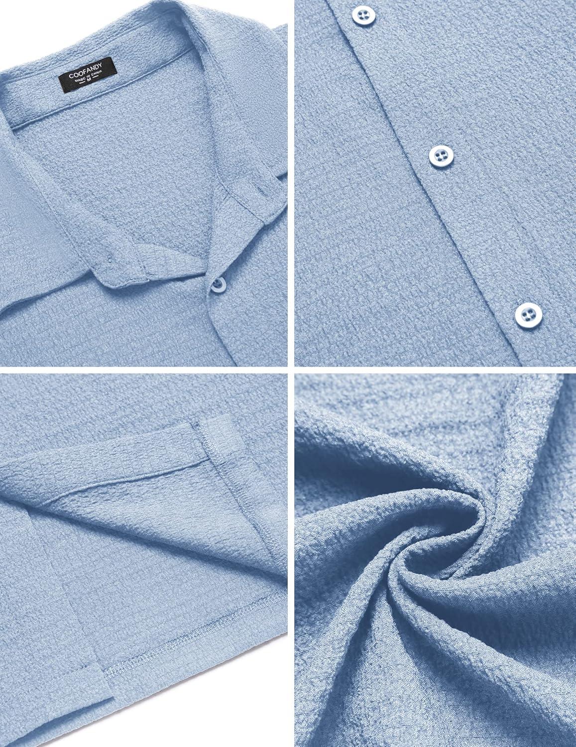 COOFANDY Men’s Casual Short Sleeve Button Down Shirt Textured Summer Beach Shirt(Sky Blue)