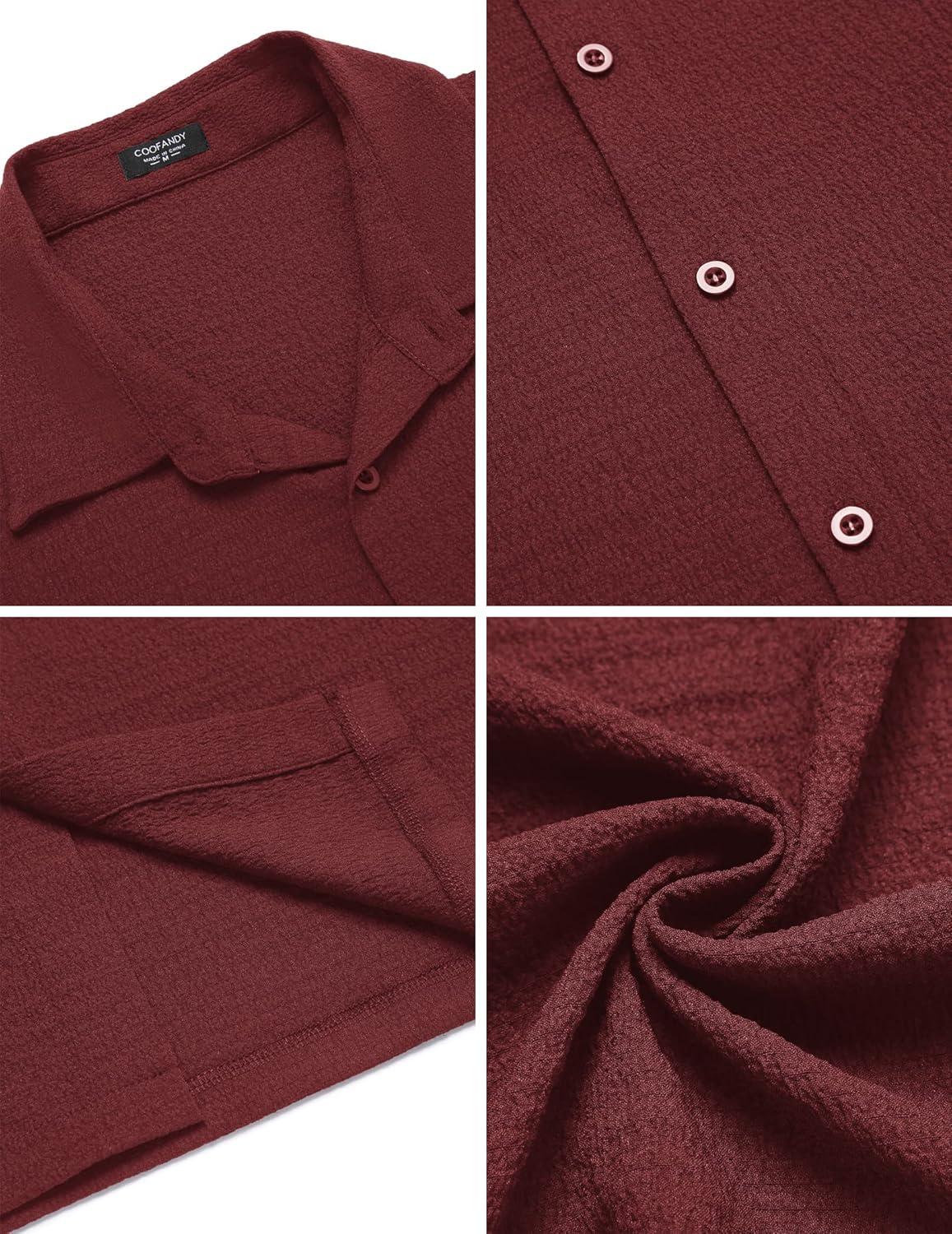 COOFANDY Men’s Casual Short Sleeve Button Down Shirt Textured Summer Beach Shirt(Wine Red)