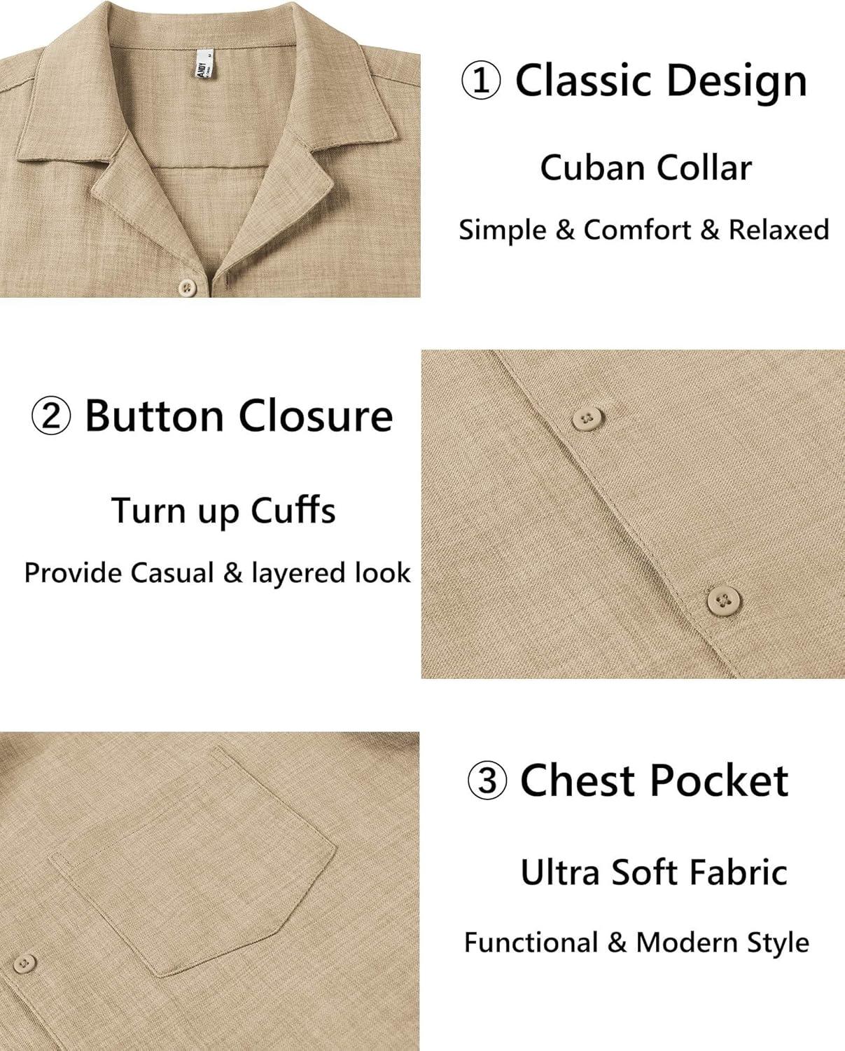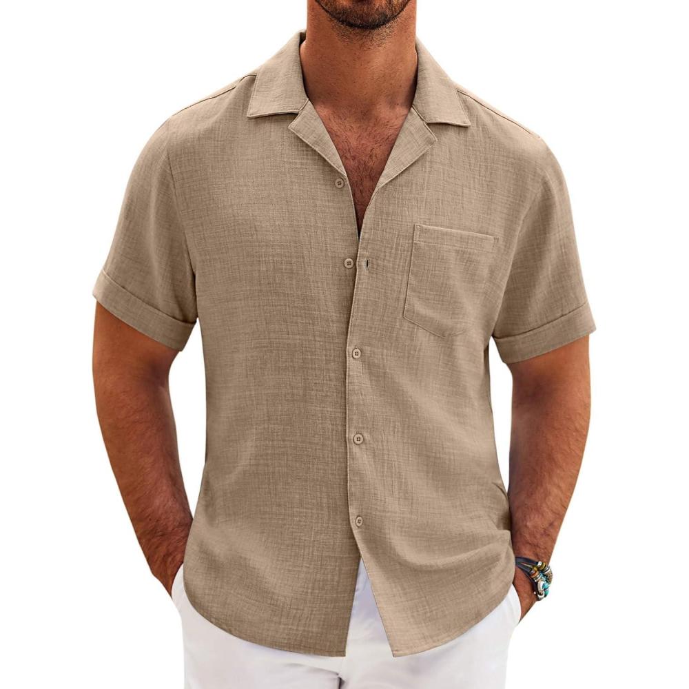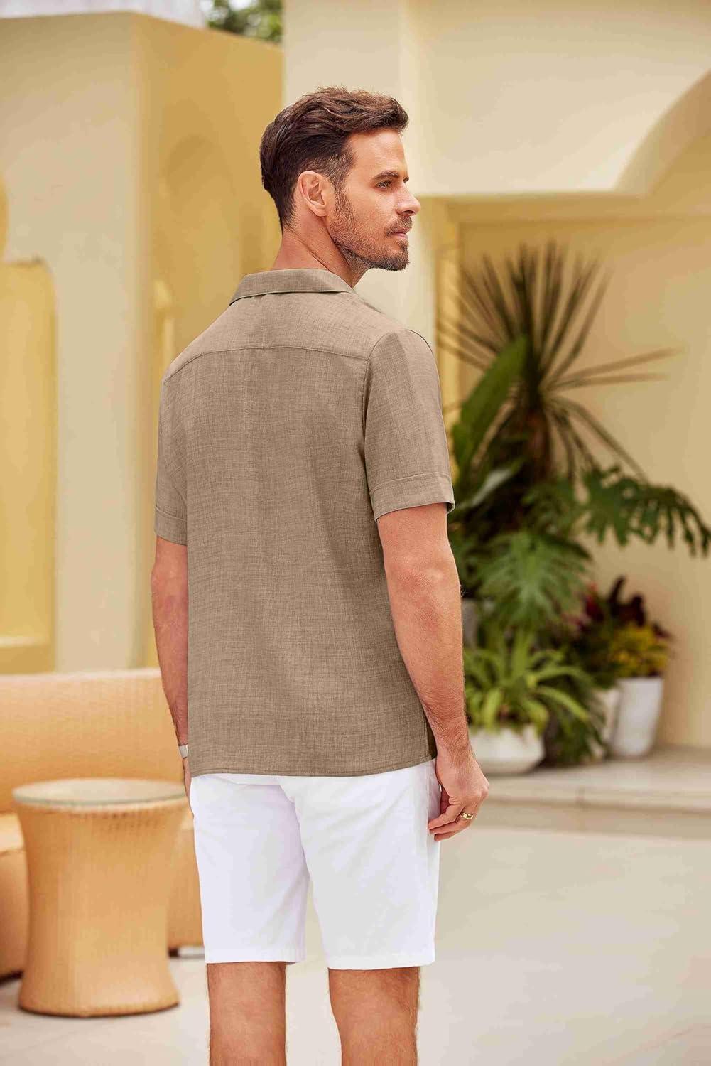 COOFANDY Mens Casual Short Sleeve Button Down Shirts Cuban Linen Textured Shirt Summer Beach Wear(Khaki)