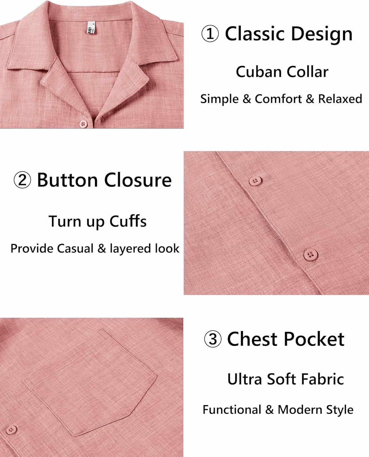 COOFANDY Mens Casual Short Sleeve Button Down Shirts Cuban Linen Textured Shirt Summer Beach Wear(Pink)