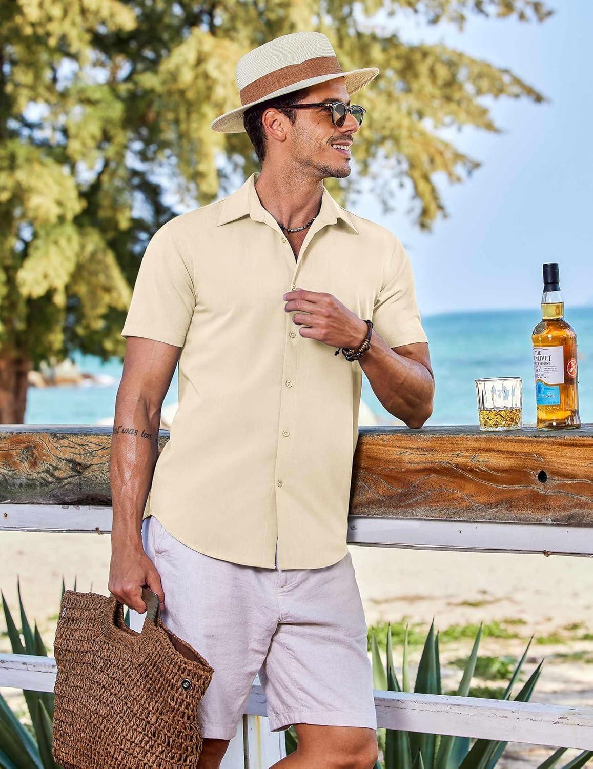 COOFANDY Mens Casual Short Sleeve Button Down Shirts Summer Untucked Wrinkle Free Shirts(Beige)