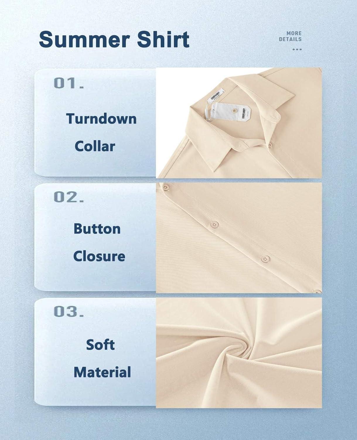imageCOOFANDY Mens Casual Short Sleeve Button Down Shirts Summer Untucked Wrinkle Free ShirtsBeige