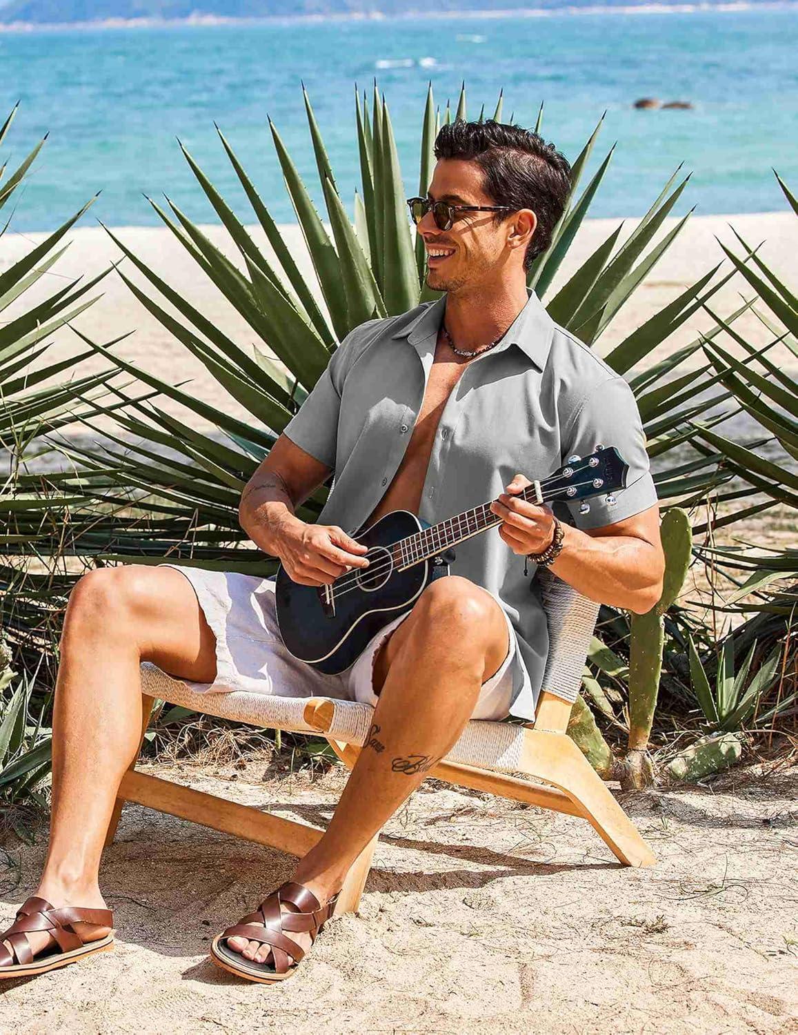 COOFANDY Mens Casual Short Sleeve Button Down Shirts Summer Untucked Wrinkle Free Shirts(Light Grey)