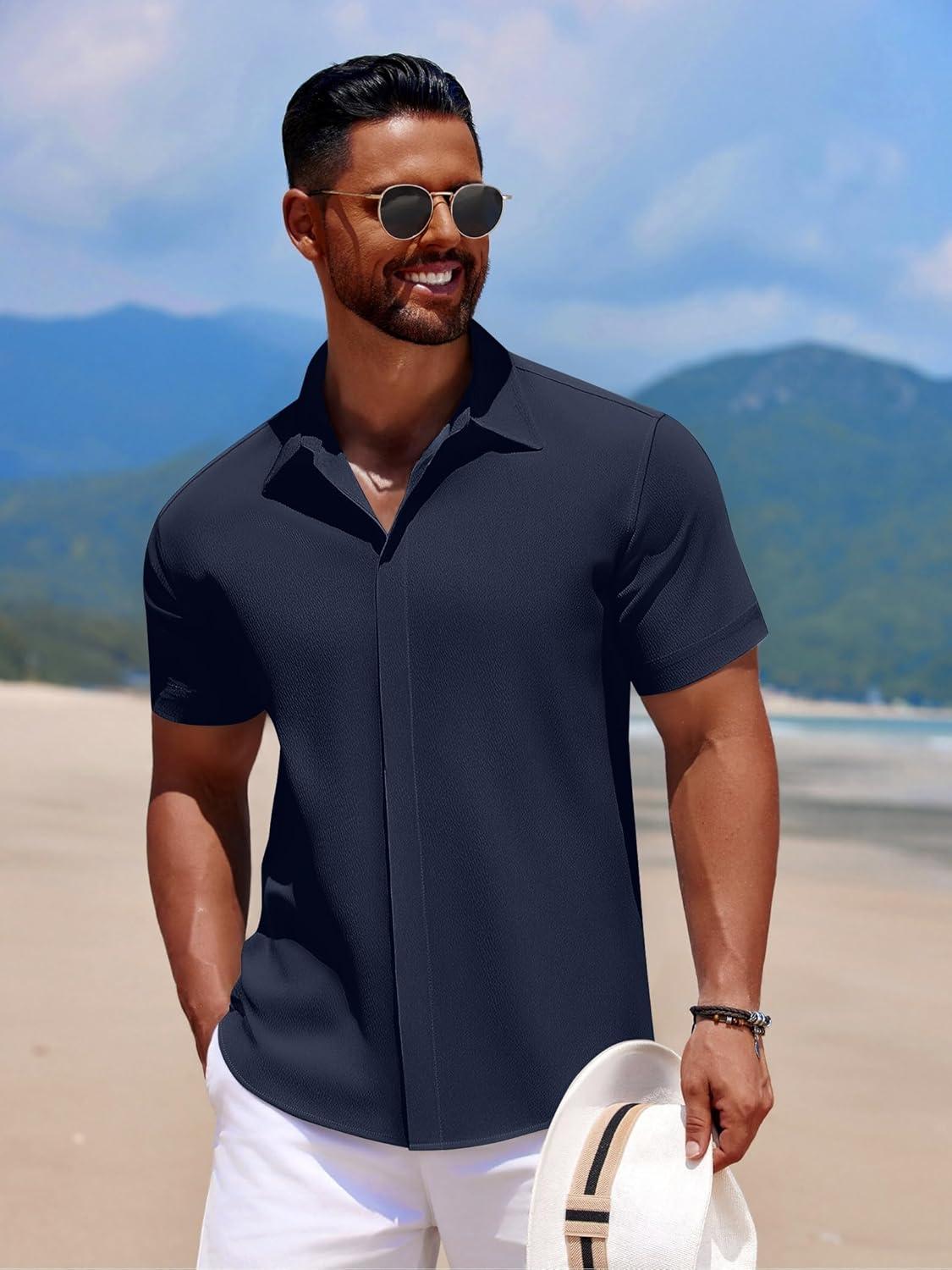 Versatile Fashion Staple — Whether you're dressing down for a casual day or suiting up for the office, this casual short sleeve button down summer beach shirt offer a versatile solution. It's a staple piece that adapts to your needs and complements every wardrobe.
