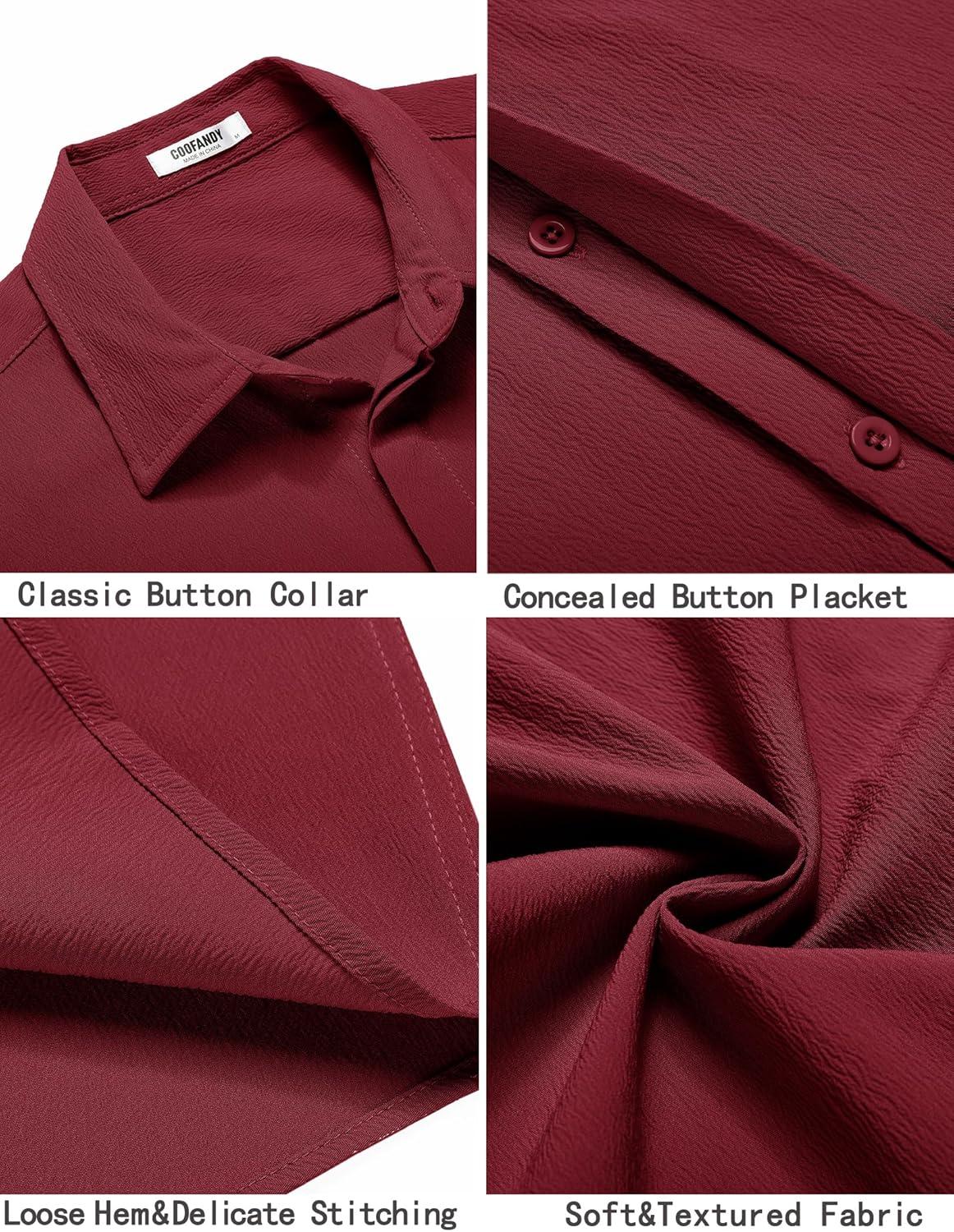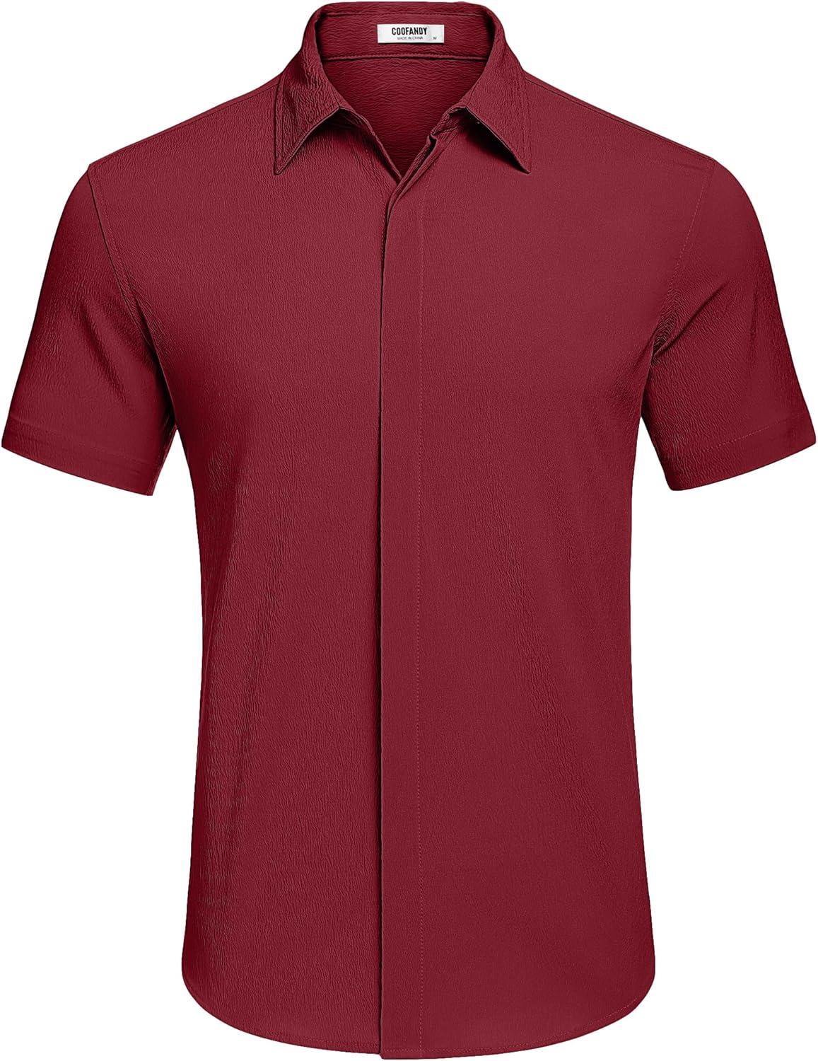 COOFANDY Men’s Casual Short Sleeve Button Down Summer Beach Shirt Lightweight Textured Wrinkle Free Stretch Shirts(Scarlet)