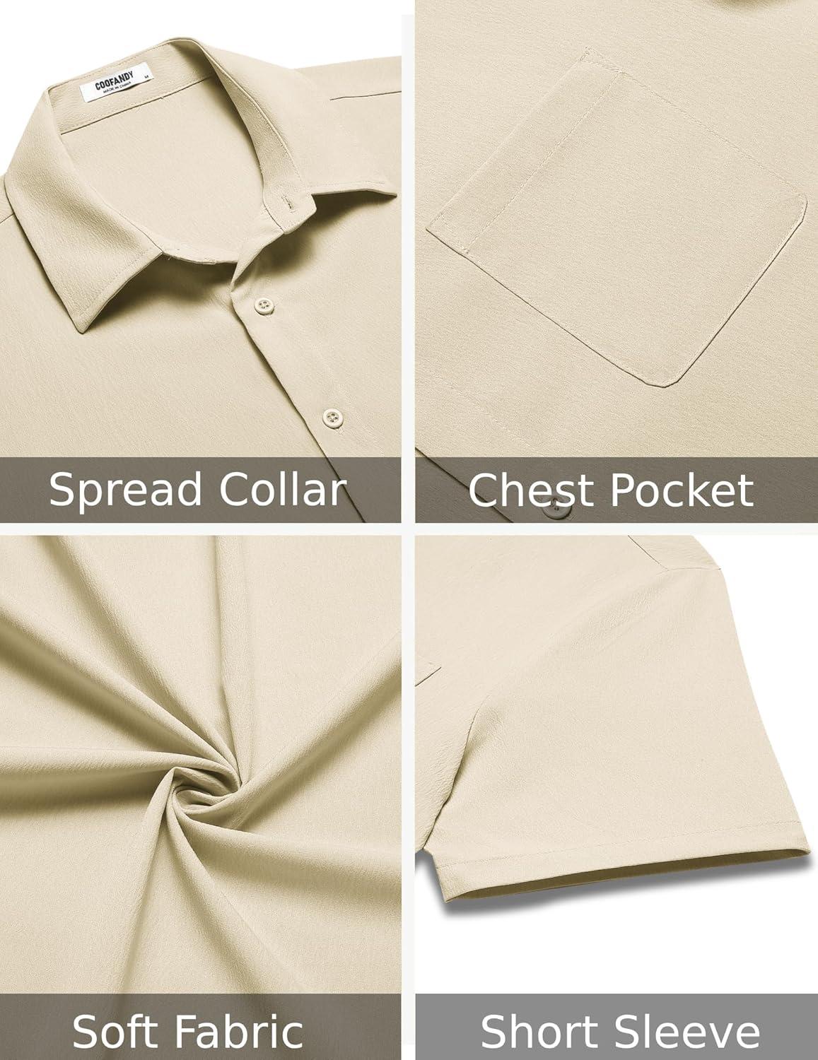 COOFANDY Men's Casual Short Sleeve Button Down Summer Beach Shirt Lightweight Textured Wrinkle Free Untucked Shirts(Vanilla Ice)