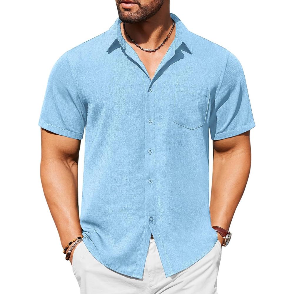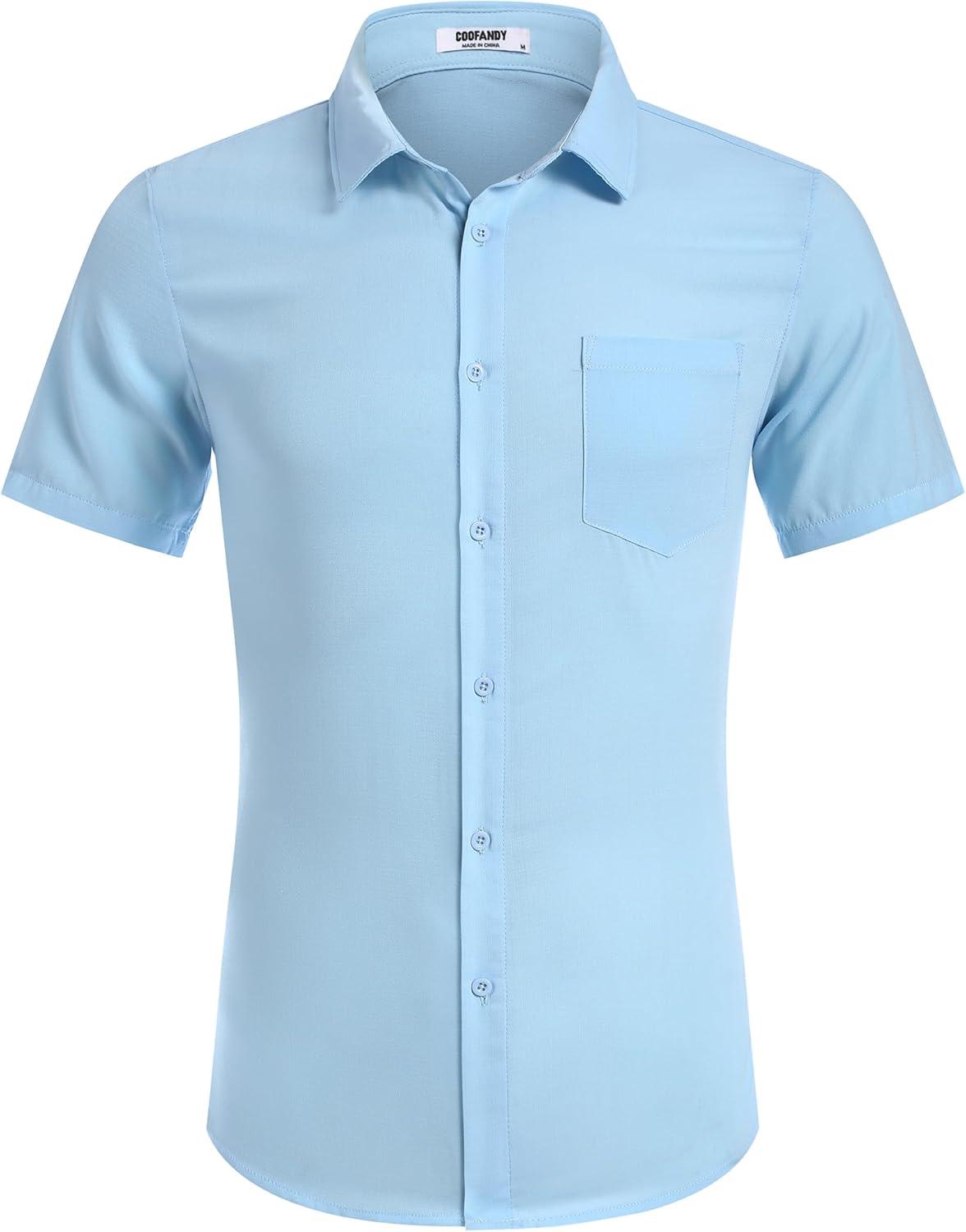 COOFANDY Mens Casual Short Sleeve Shirts Button Down Textured Shirts Summer Beach Shirt with Pocket(Light Blue)