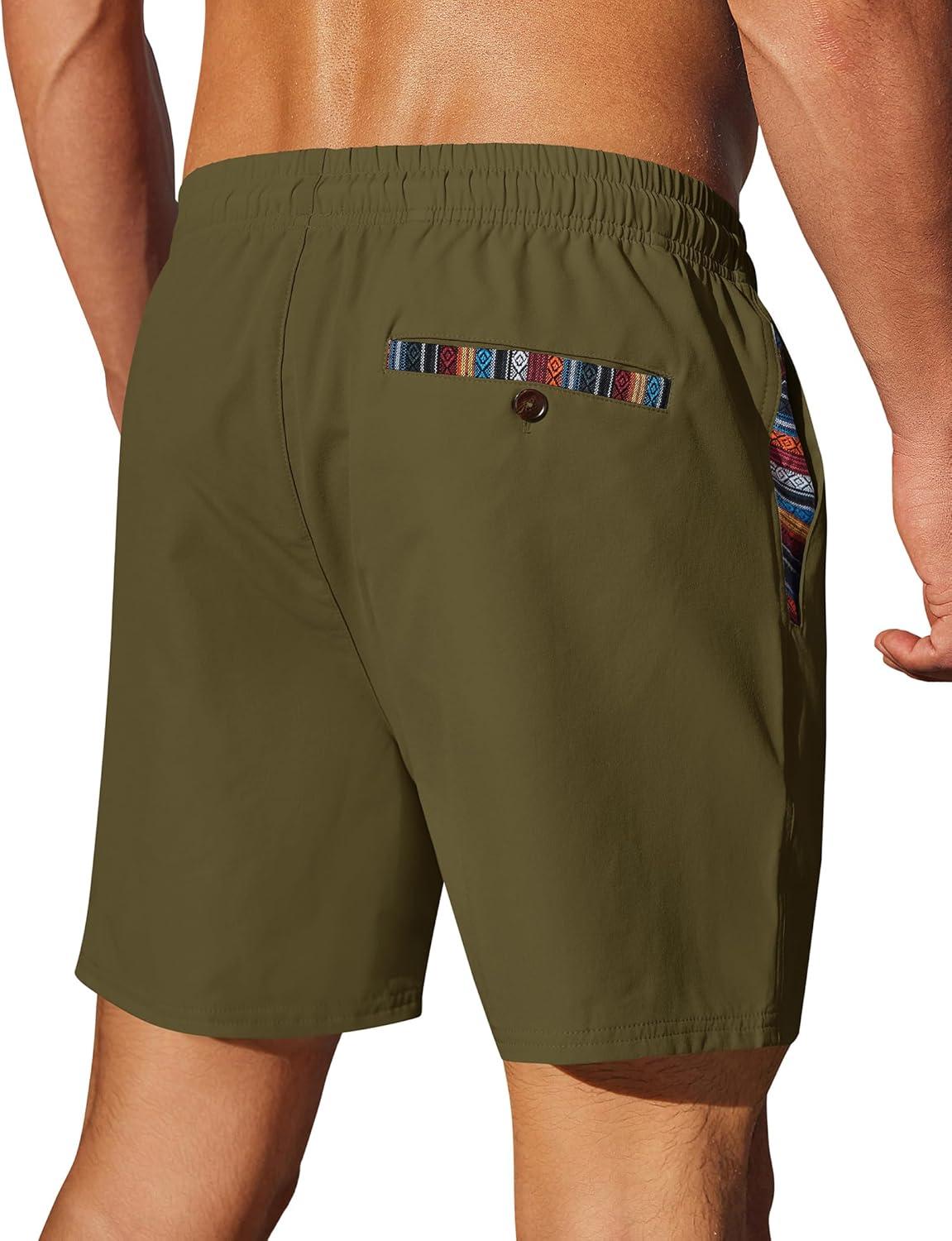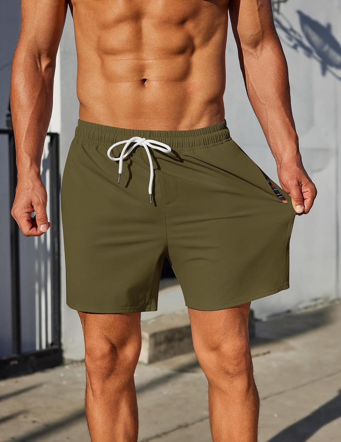 COOFANDY Mens Casual Shorts 5" Elastic Drawstring Shorts Summer Beach Athletic Shorts(Army Green)