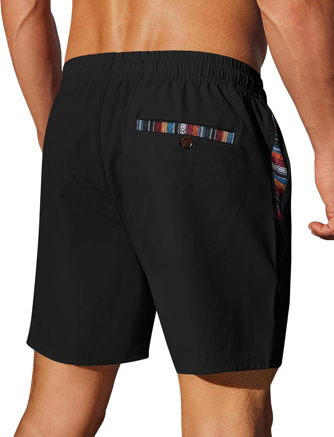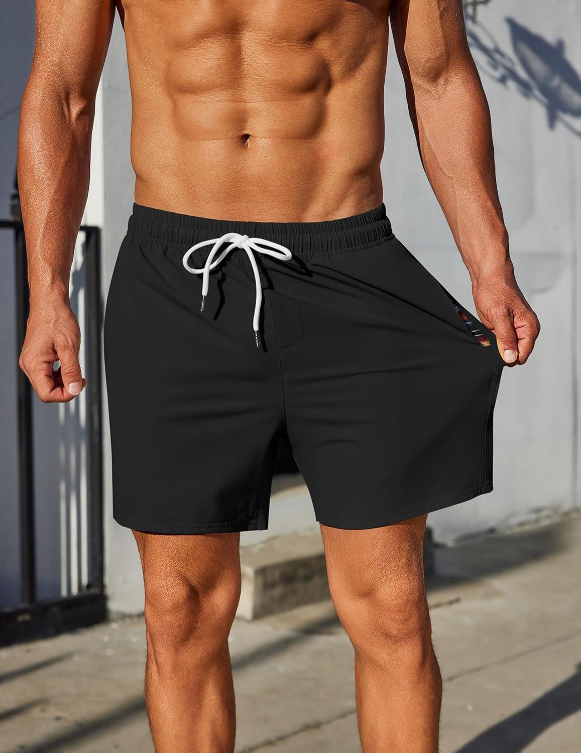 COOFANDY Mens Casual Shorts 5" Elastic Drawstring Shorts Summer Beach Athletic Shorts(Black)