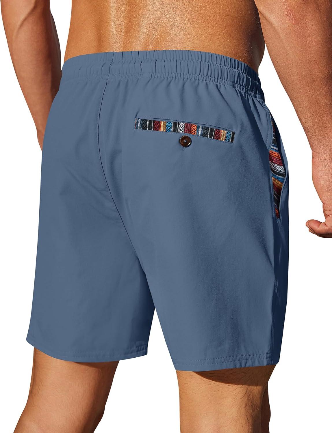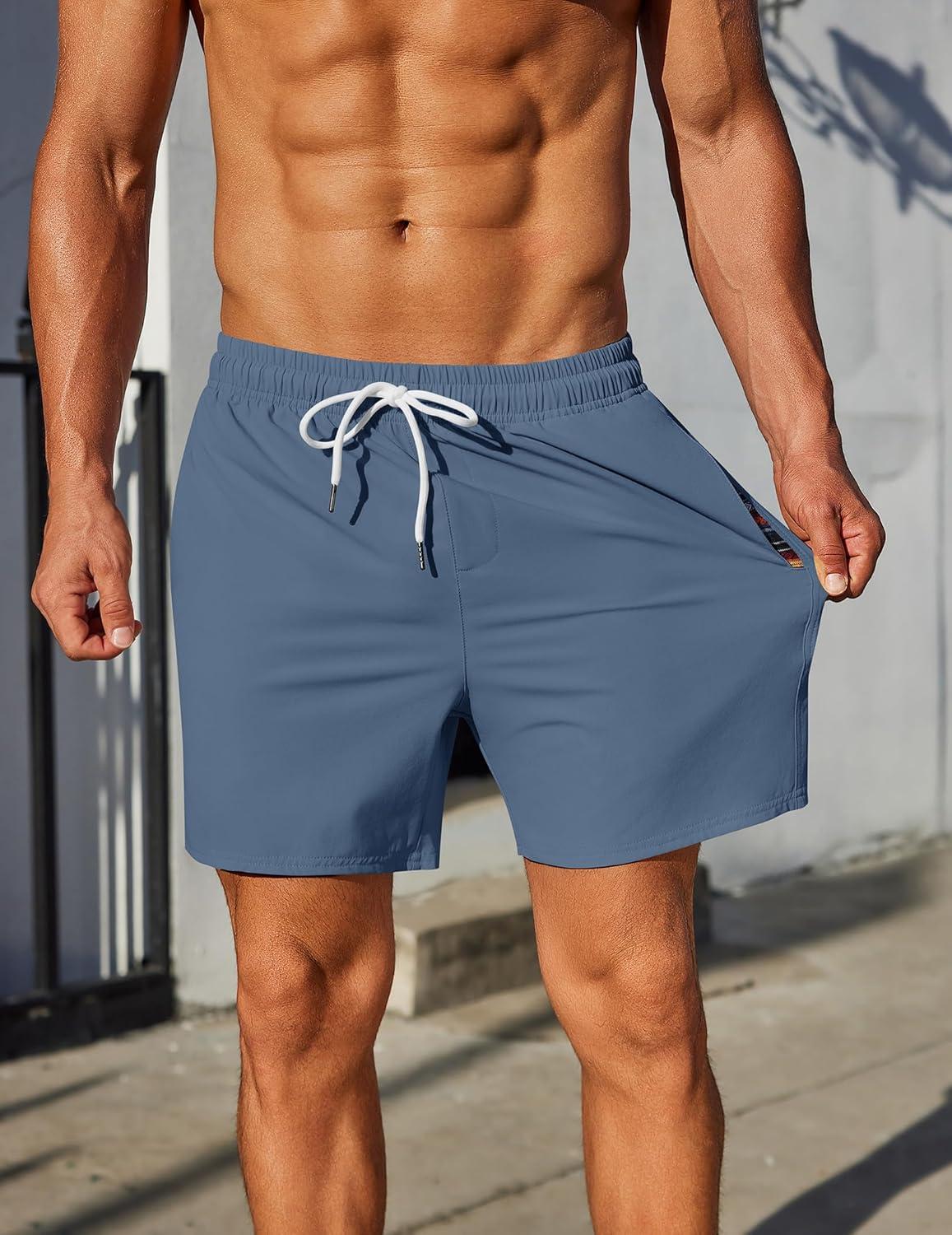 COOFANDY Mens Casual Shorts 5" Elastic Drawstring Shorts Summer Beach Athletic Shorts(Dark Blue)