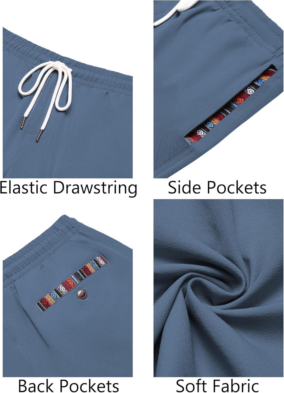 COOFANDY Mens Casual Shorts 5″ Elastic Drawstring Shorts Summer Beach Athletic Shorts(Dark Blue)
