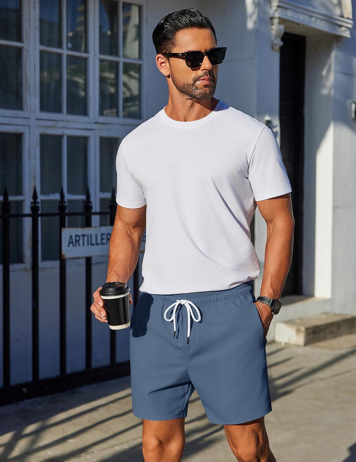 imageCOOFANDY Mens Casual Shorts 5quot Elastic Drawstring Shorts Summer Beach Athletic ShortsWhite