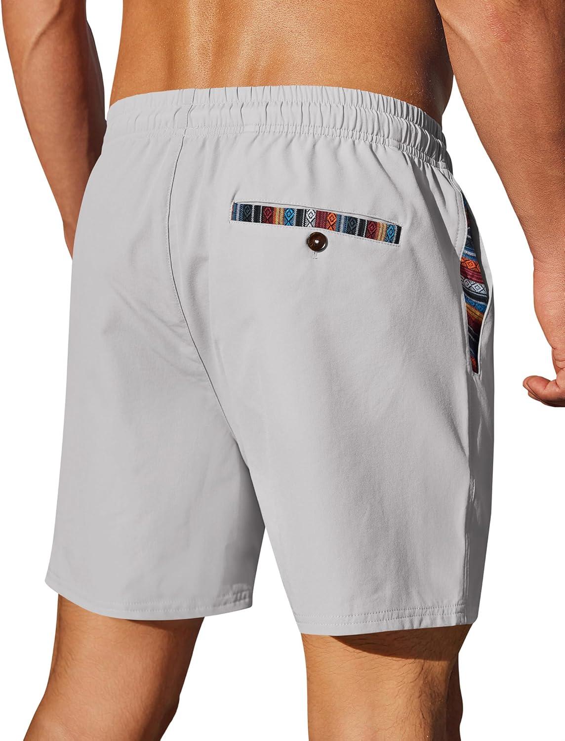 COOFANDY Mens Casual Shorts 5″ Elastic Drawstring Shorts Summer Beach Athletic Shorts(Light Grey)