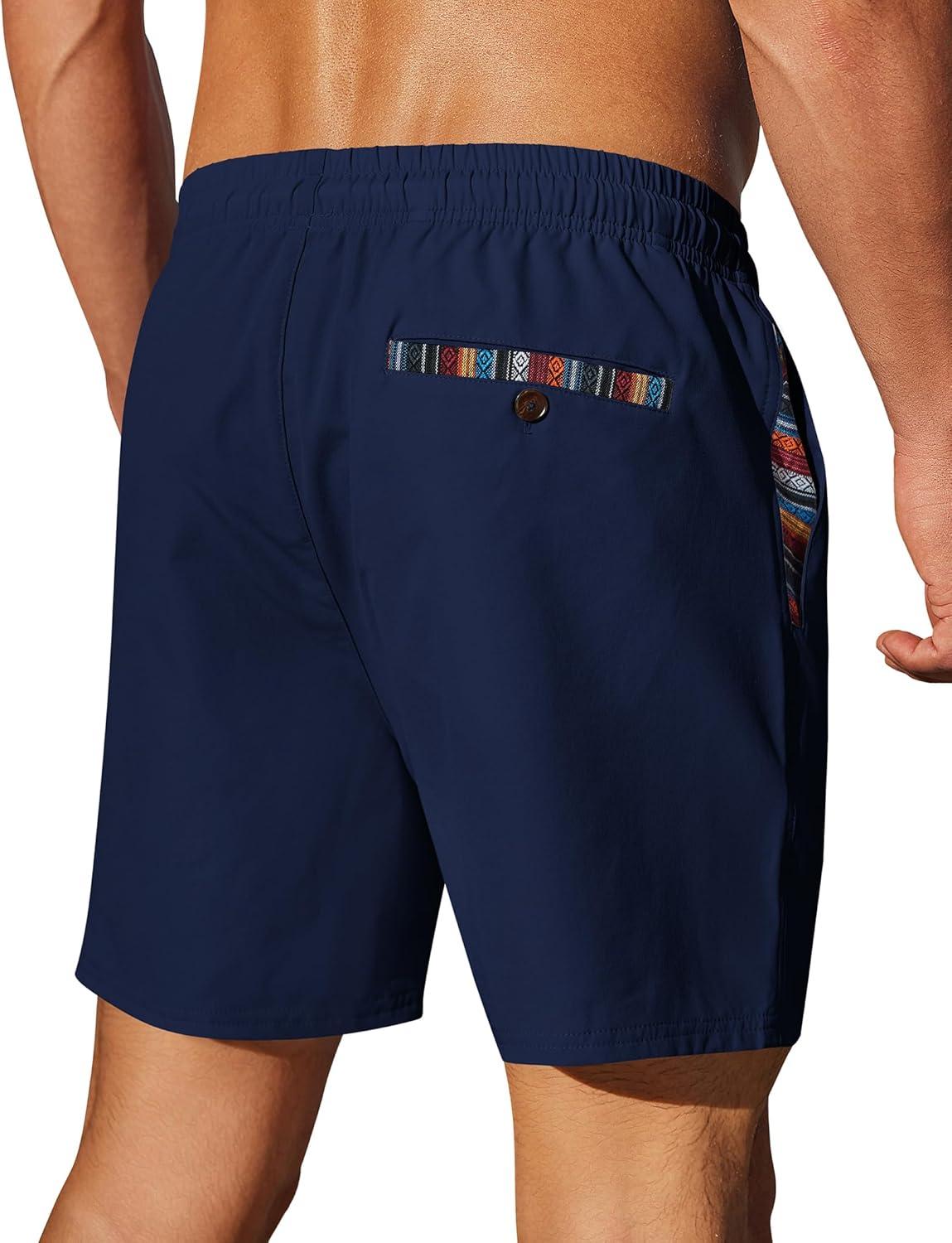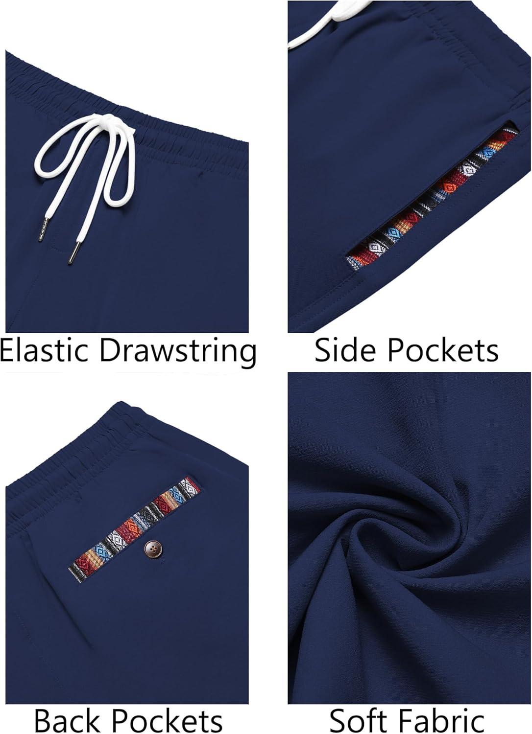 COOFANDY Mens Casual Shorts 5″ Elastic Drawstring Shorts Summer Beach Athletic Shorts(Dark Blue)