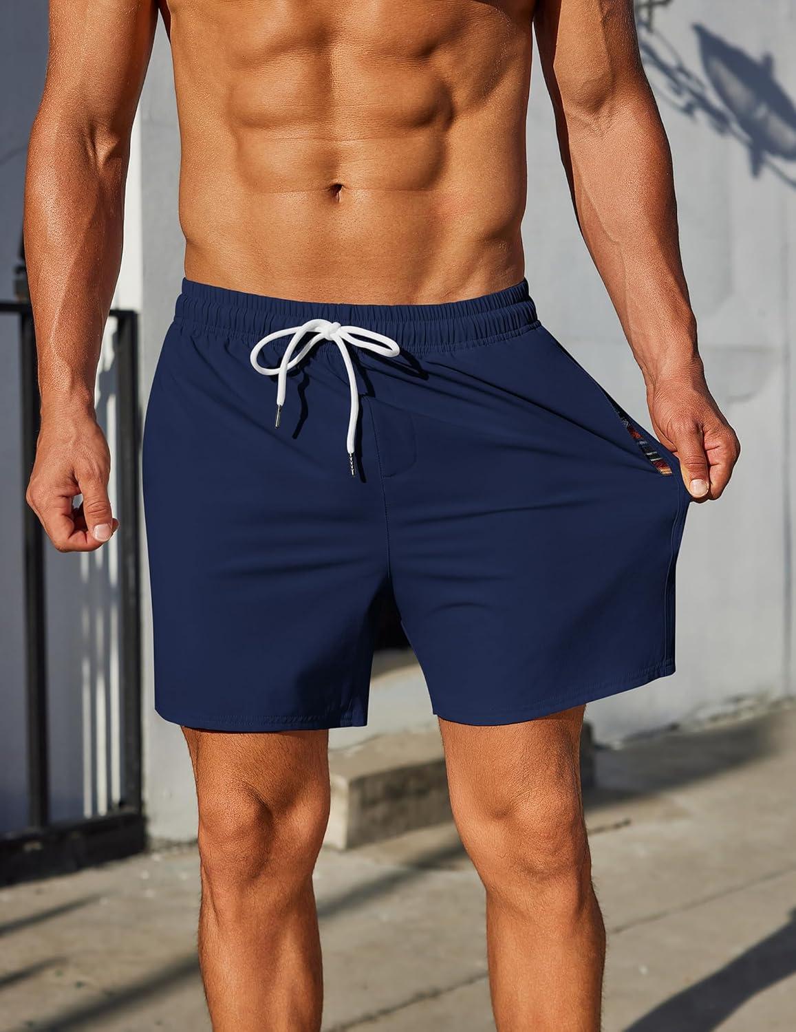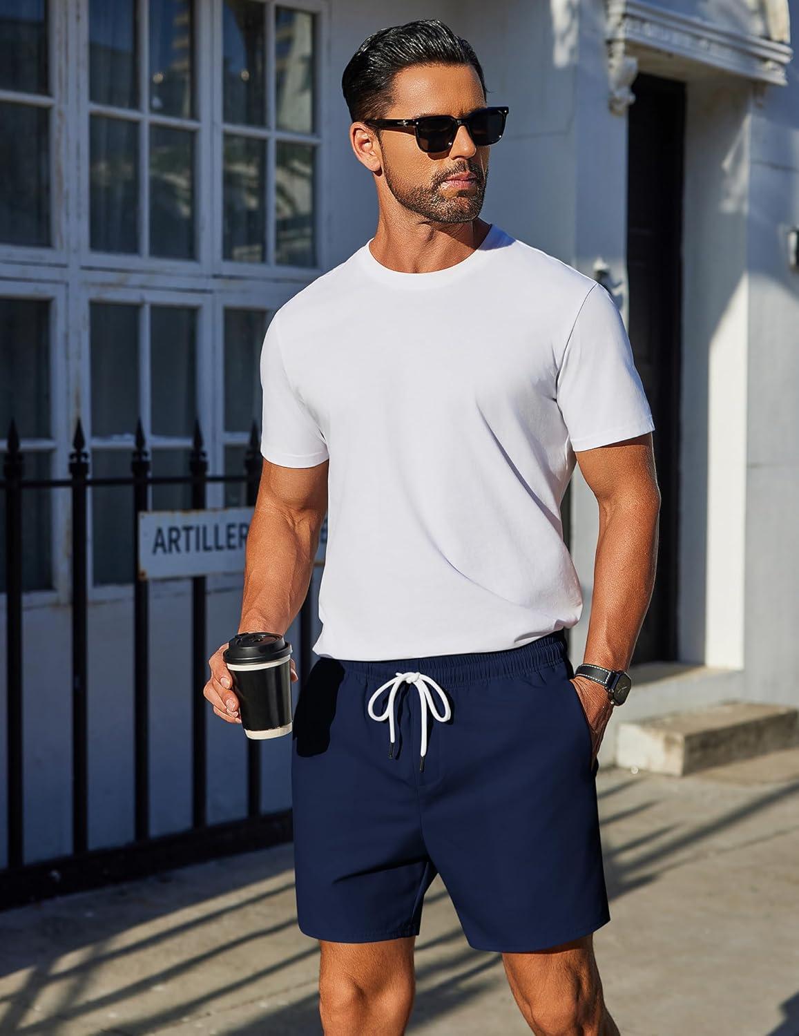 COOFANDY Mens Casual Shorts 5" Elastic Drawstring Shorts Summer Beach Athletic Shorts(Navy Blue)