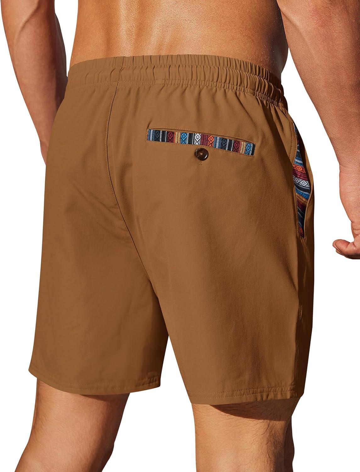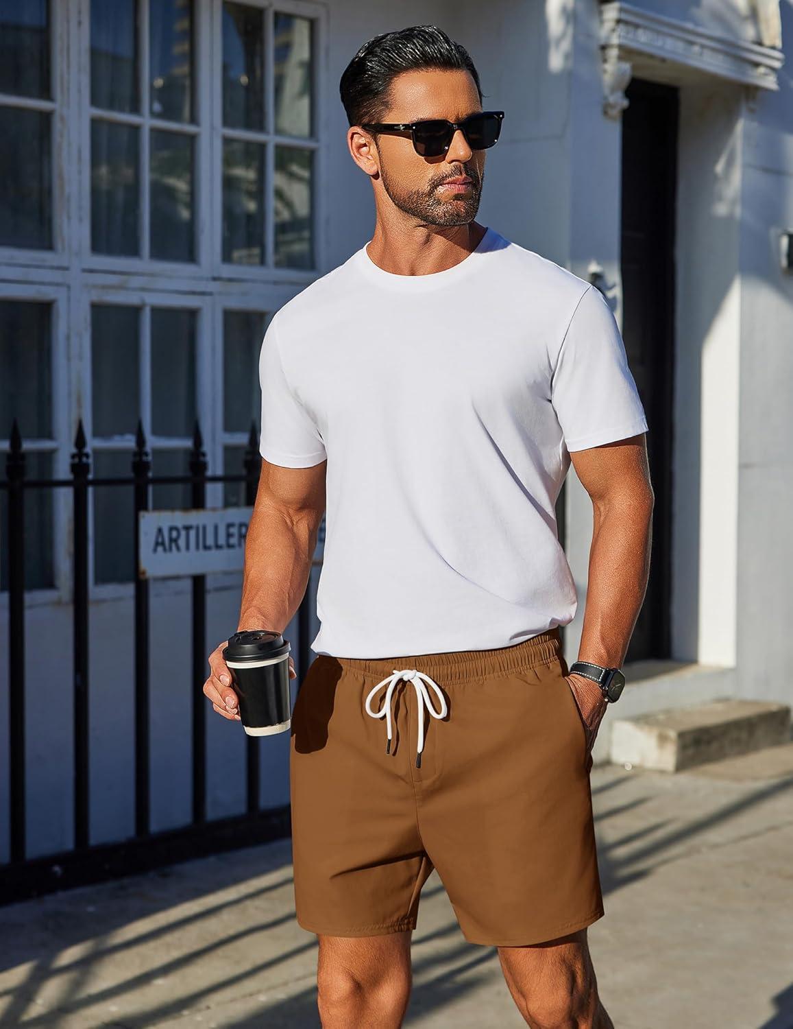 imageCOOFANDY Mens Casual Shorts 5quot Elastic Drawstring Shorts Summer Beach Athletic ShortsTan