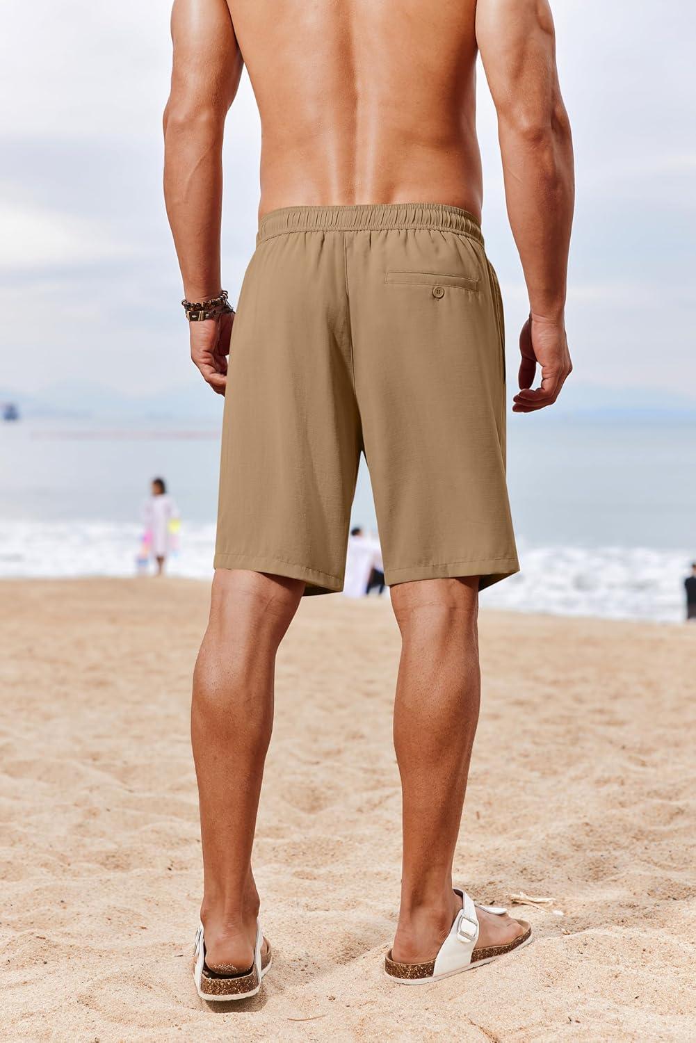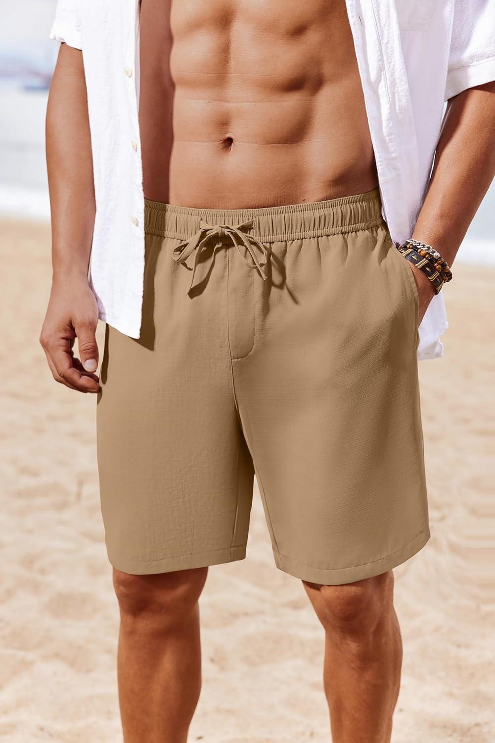 COOFANDY Men’s Casual Shorts 7 inch Elastic Waist Drawstring Lightweight Summer Beach Shorts with Pockets(Dark Khaki)