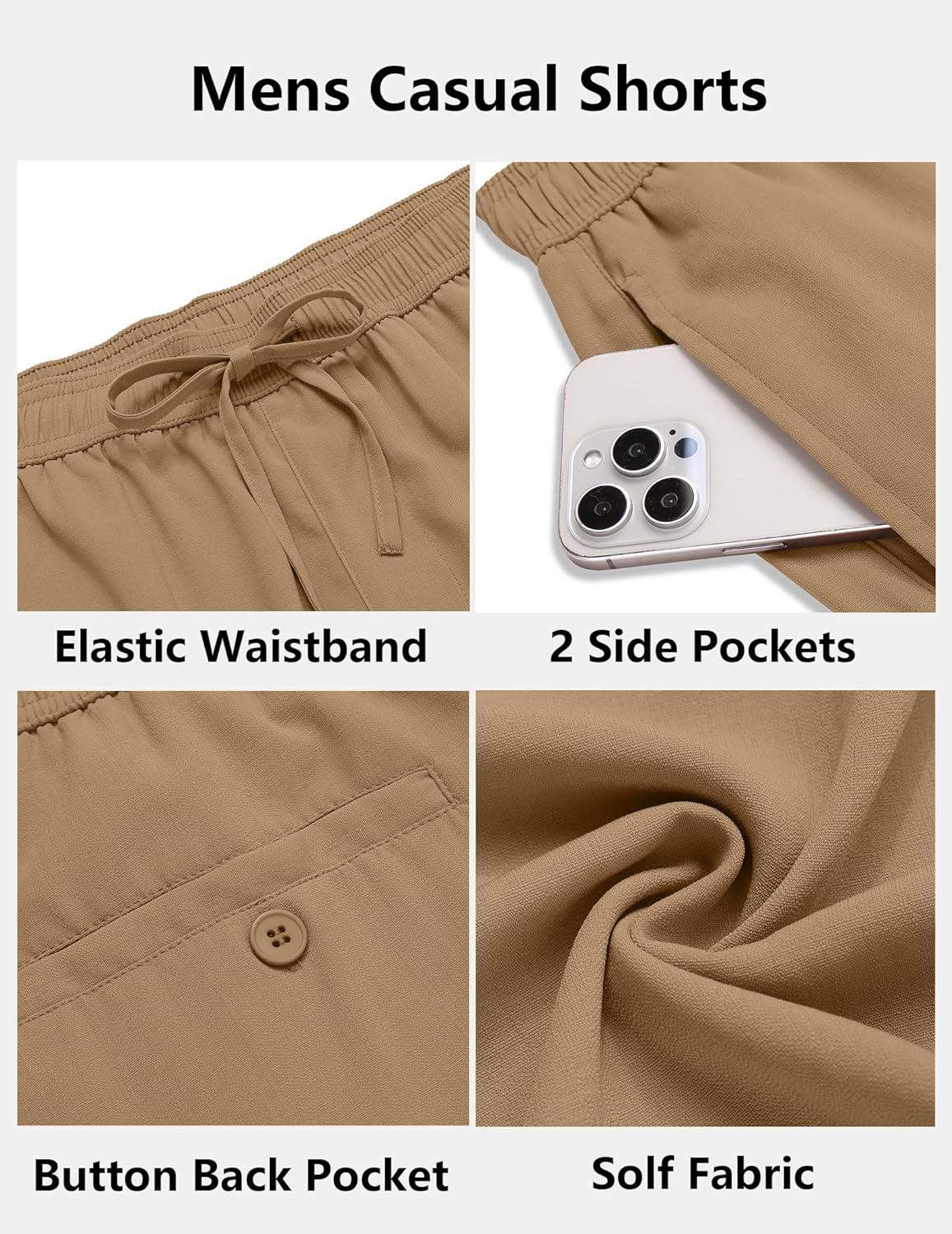 imageCOOFANDY Mens Casual Shorts 7 inch Elastic Waist Drawstring Lightweight Summer Beach Shorts with PocketsDark Khaki