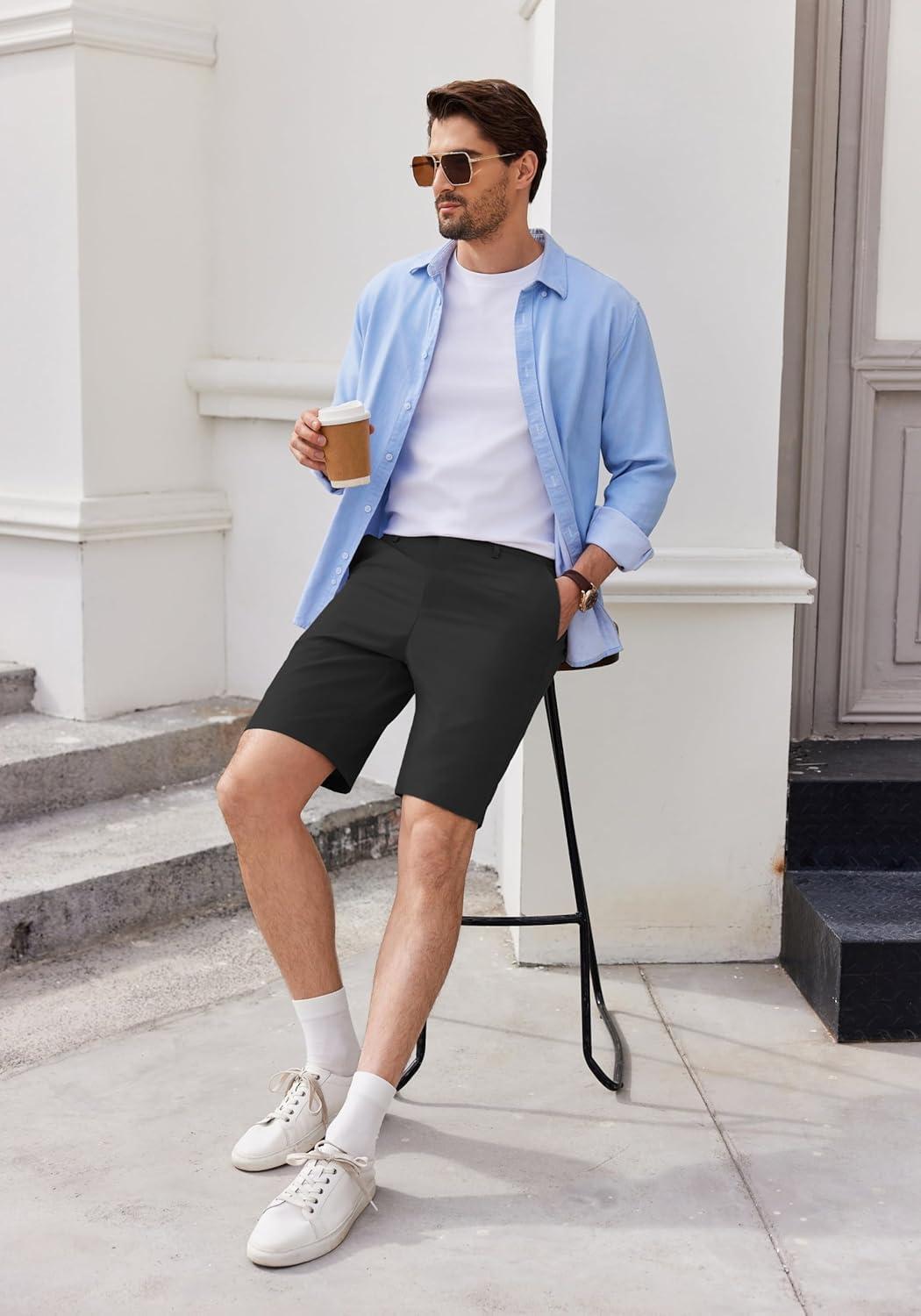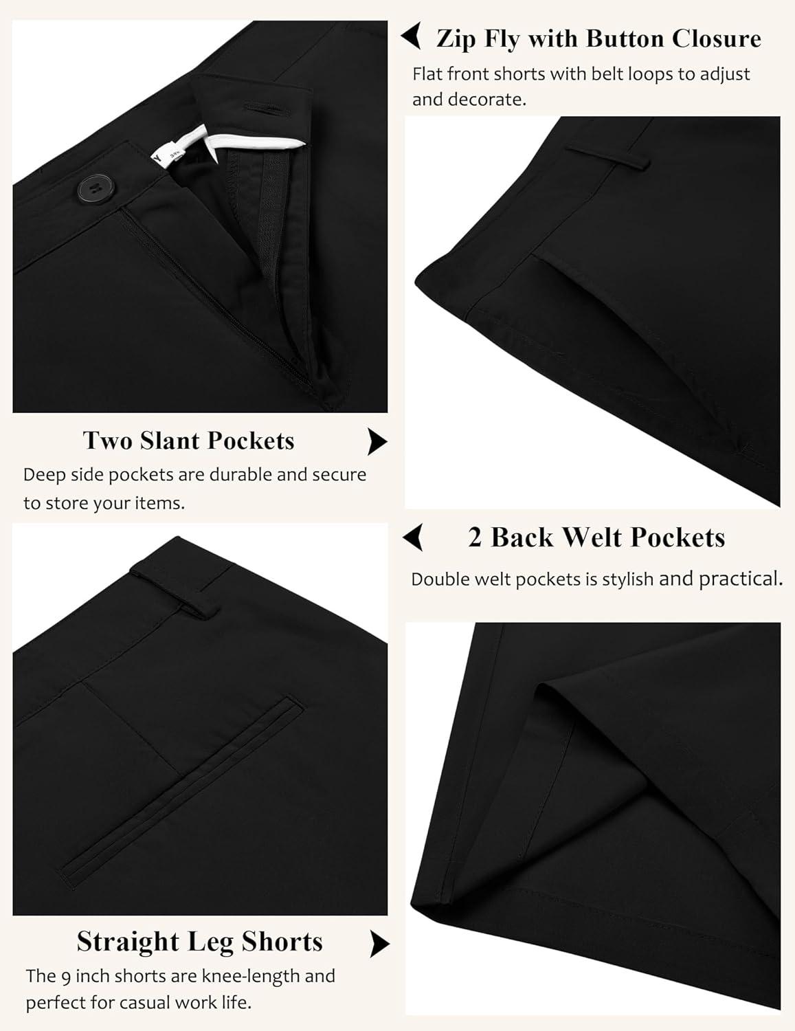 COOFANDY Men's Casual Shorts 9 Inch Flat Front Lightweight Summer Beach Vacation Shorts(Black)