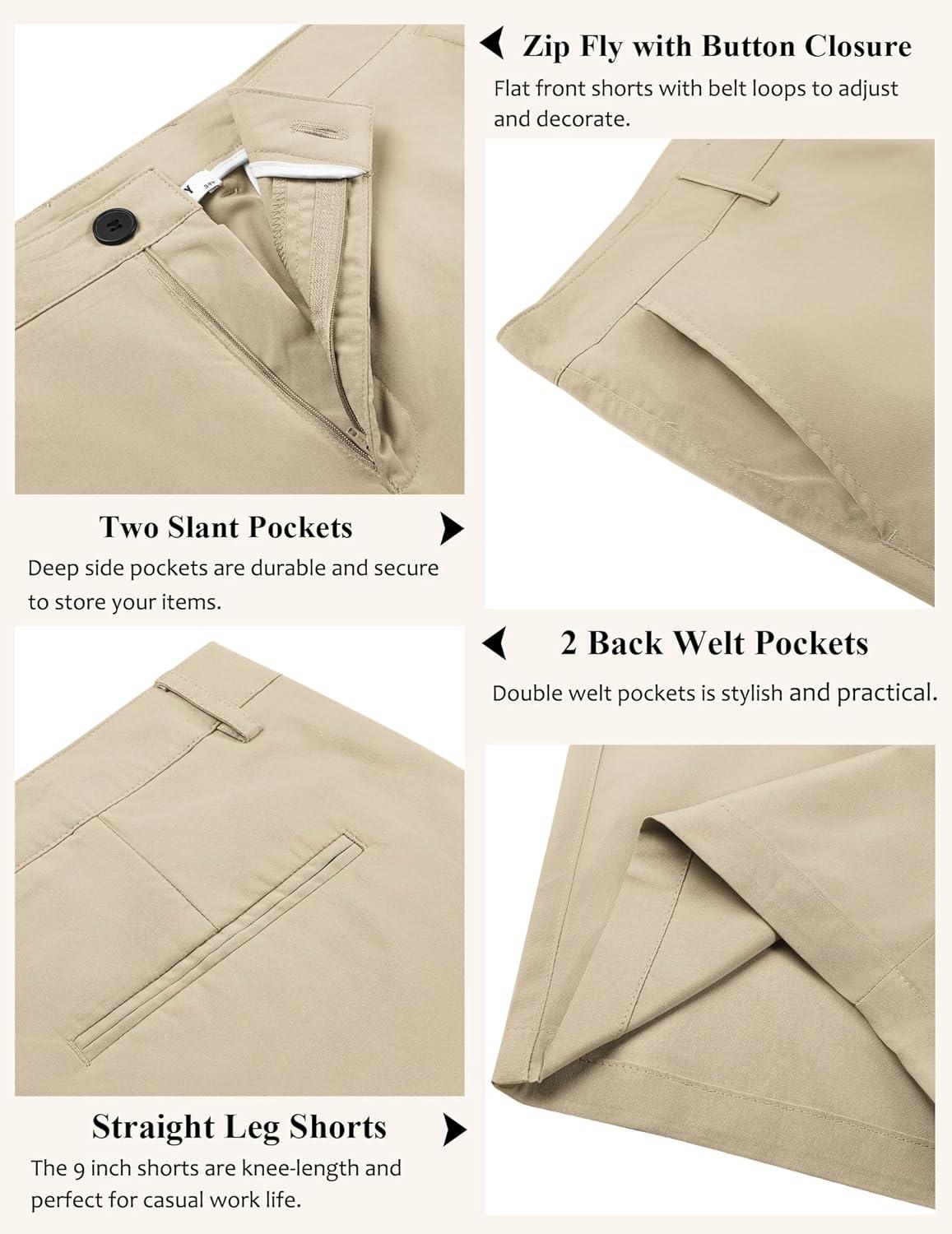 COOFANDY Men's Casual Shorts 9 Inch Flat Front Lightweight Summer Beach Vacation Shorts(Light Khaki)