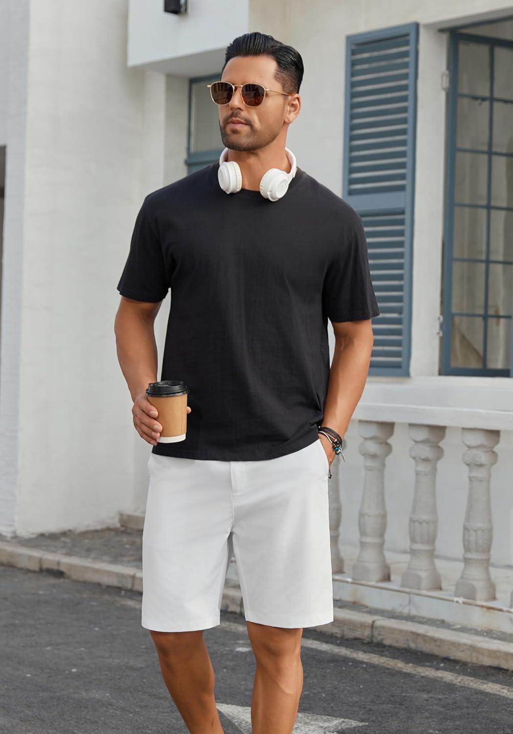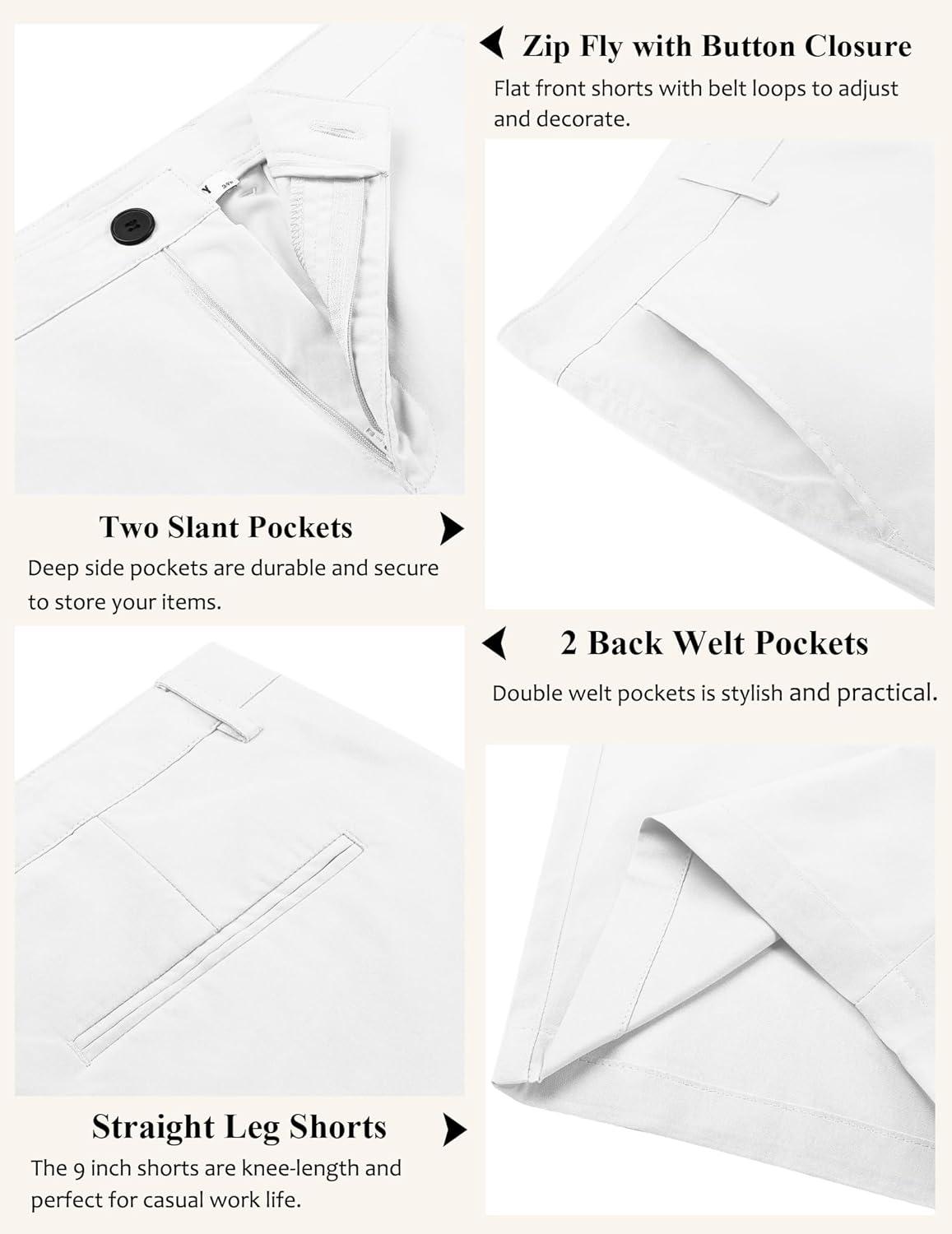 imageCOOFANDY Mens Casual Shorts 9 Inch Flat Front Lightweight Summer Beach Vacation ShortsWhite