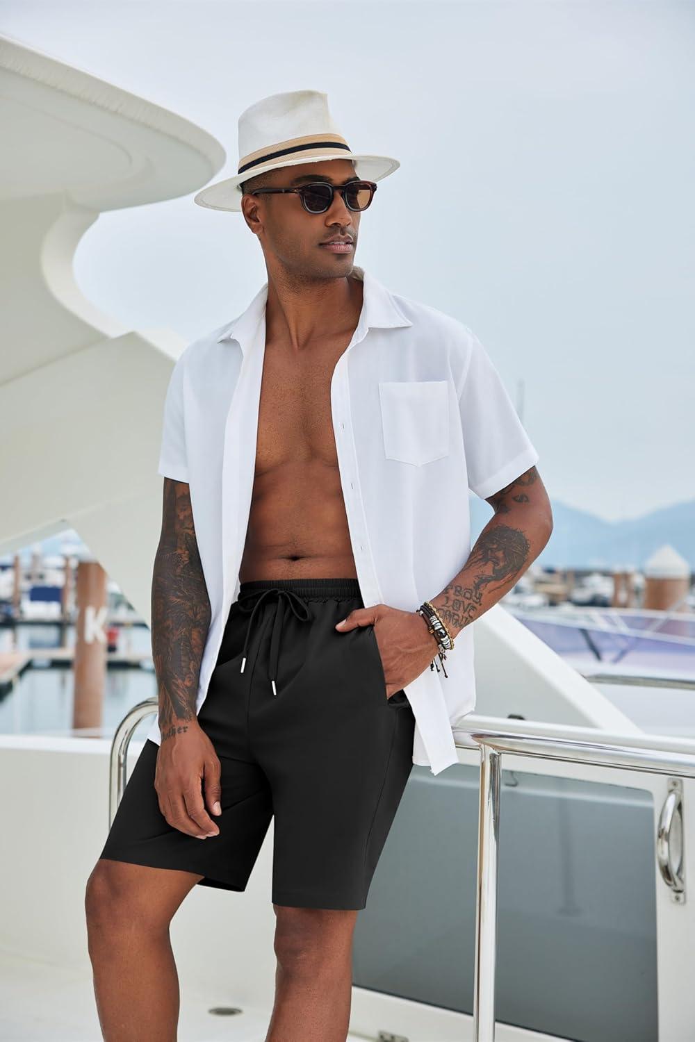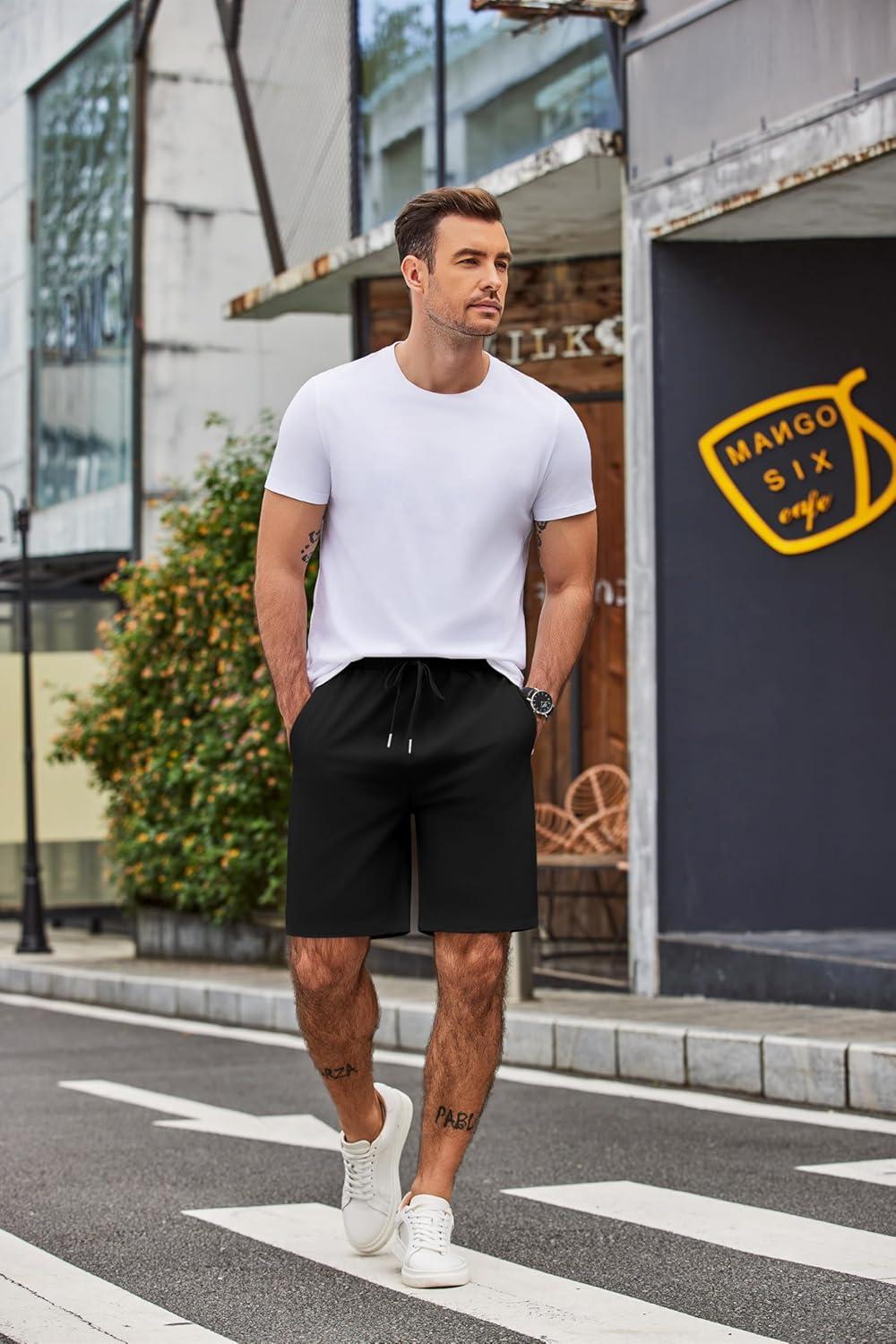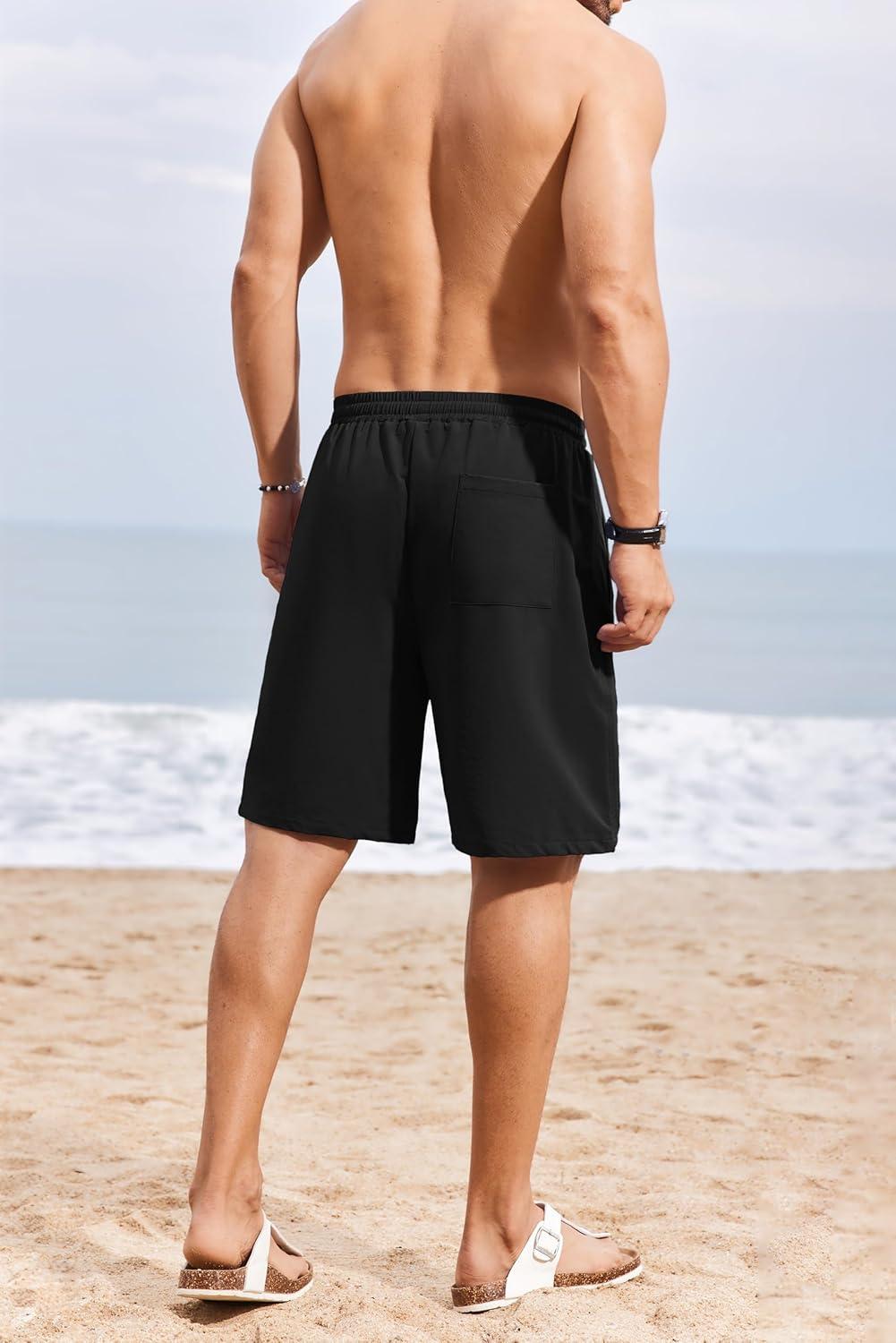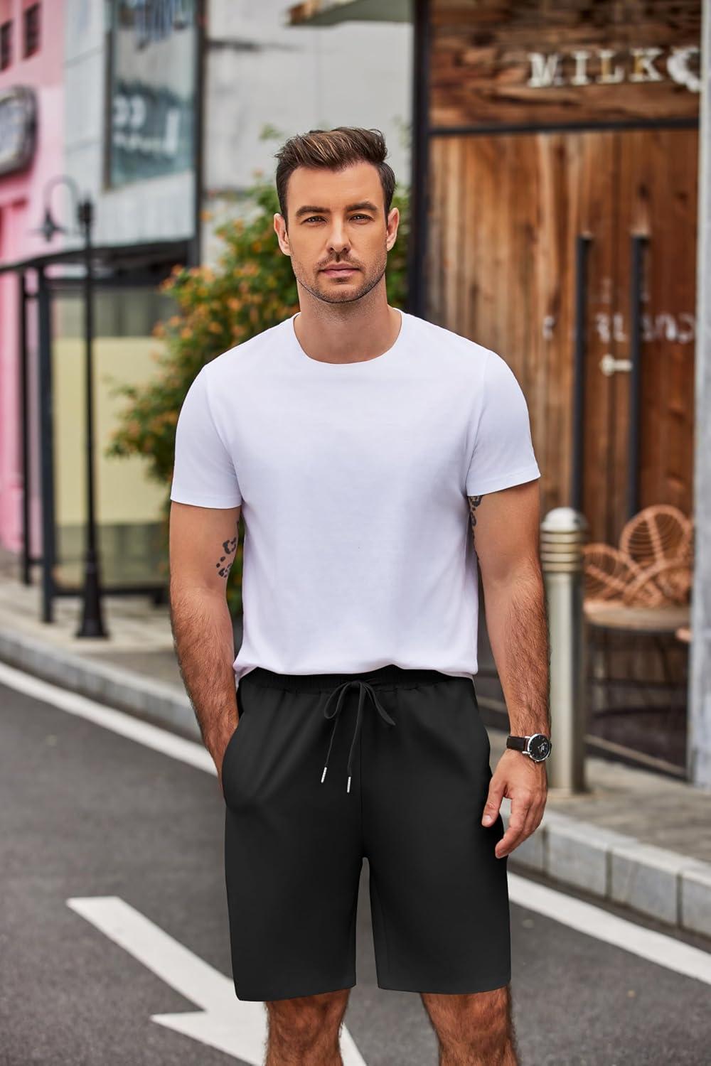 COOFANDY Men’s Casual Shorts 9 inch Inseam Elastic Waist Drawstring Short Lightweight Stretch Summer Beach Shorts(Black)