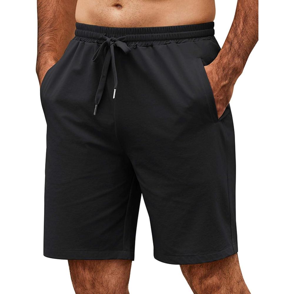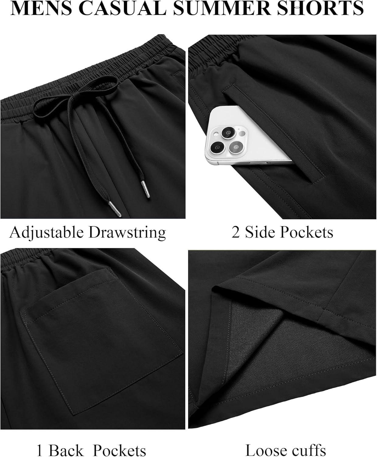 COOFANDY Men's Casual Shorts 9 inch Inseam Elastic Waist Drawstring Short Lightweight Stretch Summer Beach Shorts(Black)