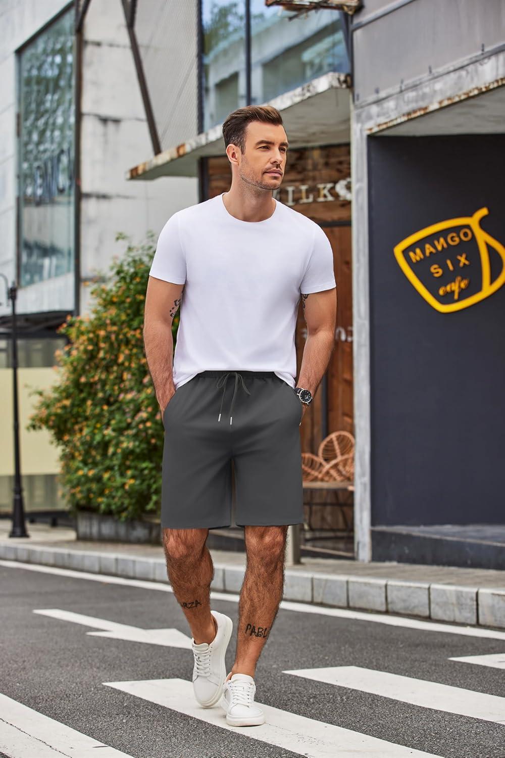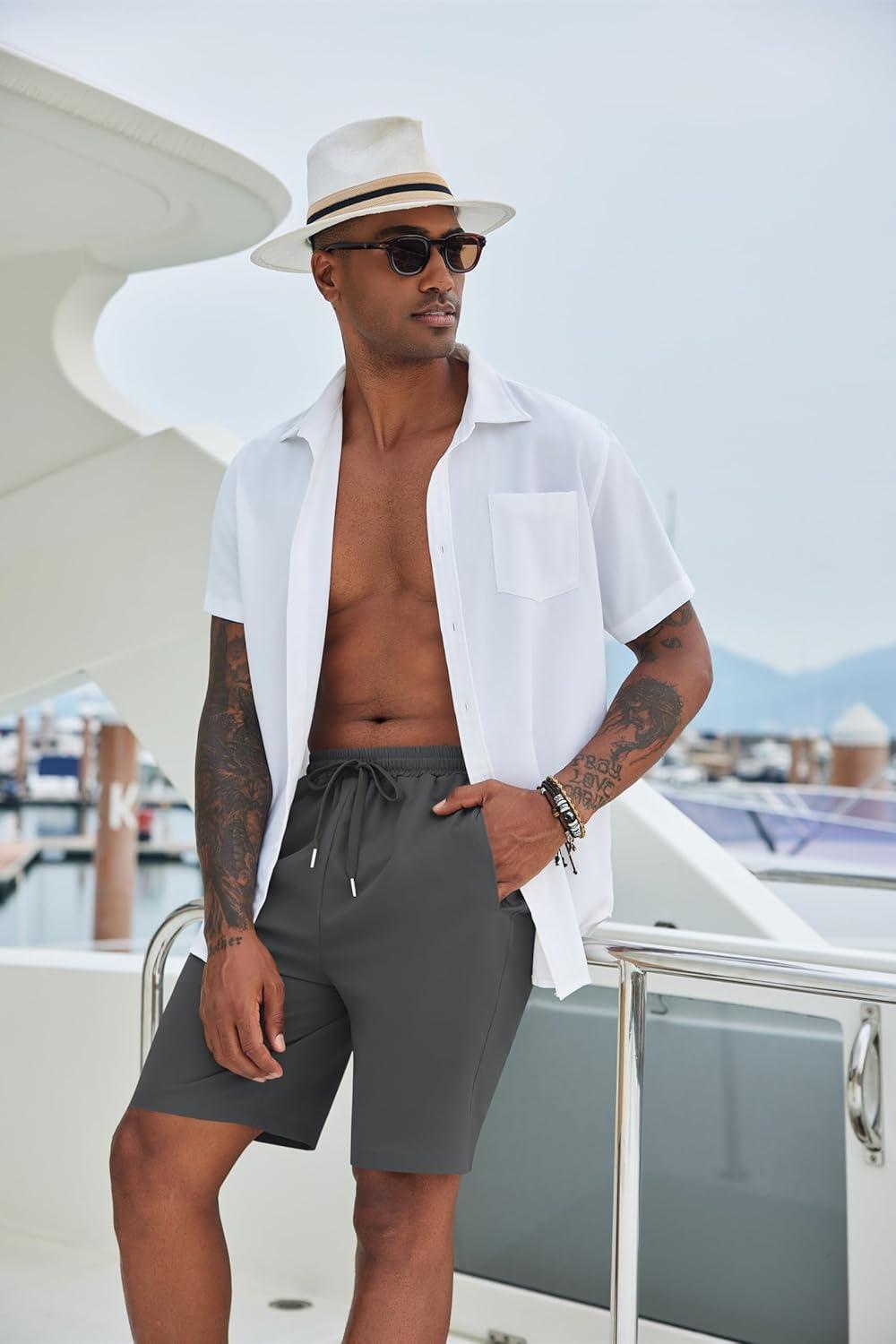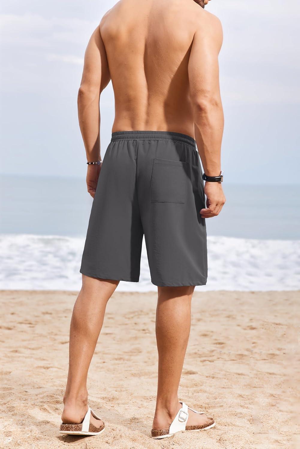 COOFANDY Men's Casual Shorts 9 inch Inseam Elastic Waist Drawstring Short Lightweight Stretch Summer Beach Shorts(Dark Grey)