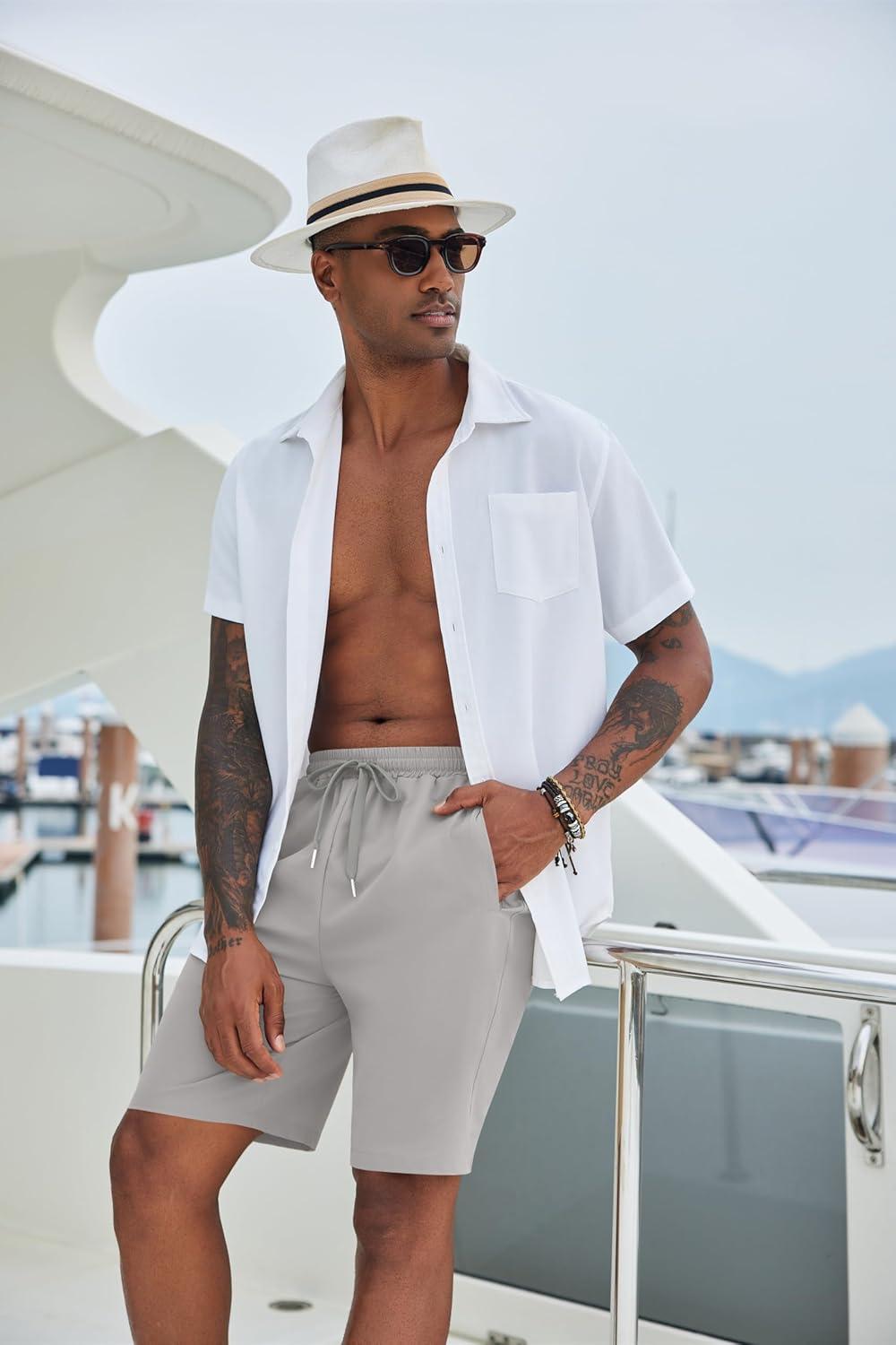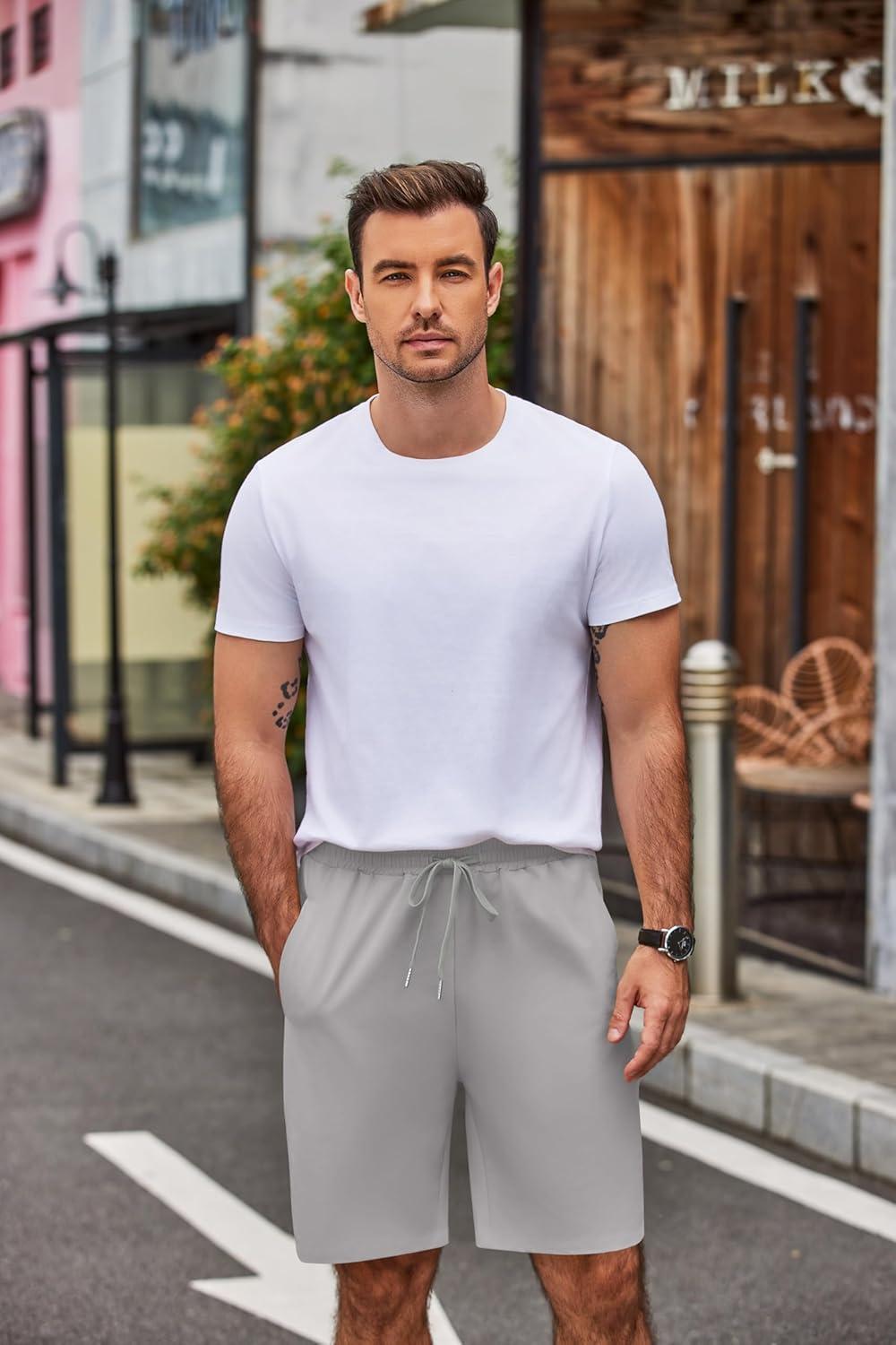 COOFANDY Men's Casual Shorts 9 inch Inseam Elastic Waist Drawstring Short Lightweight Stretch Summer Beach Shorts(Light Grey)