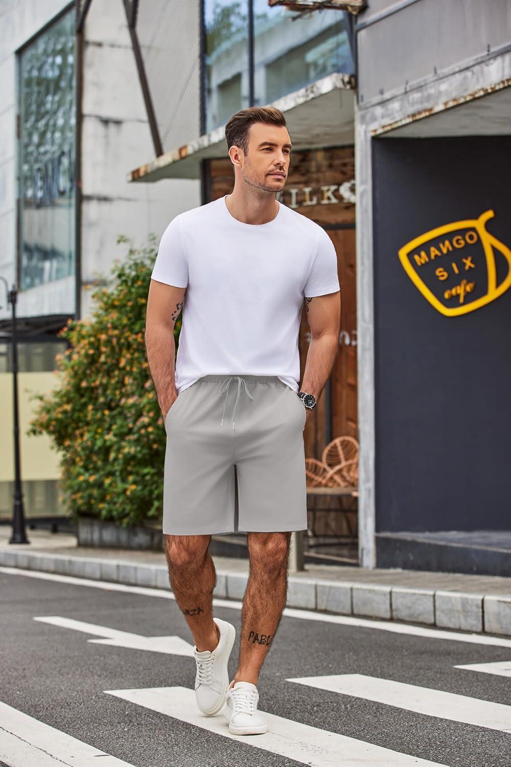 Get the COOFANDY Men’s Casual Shorts 9 inch Inseam Elastic Waist Drawstring Short Lightweight Stretch Summer Beach Shorts(Light Grey) you’ve been eyeing at a discounted price during our seasonal sale event.