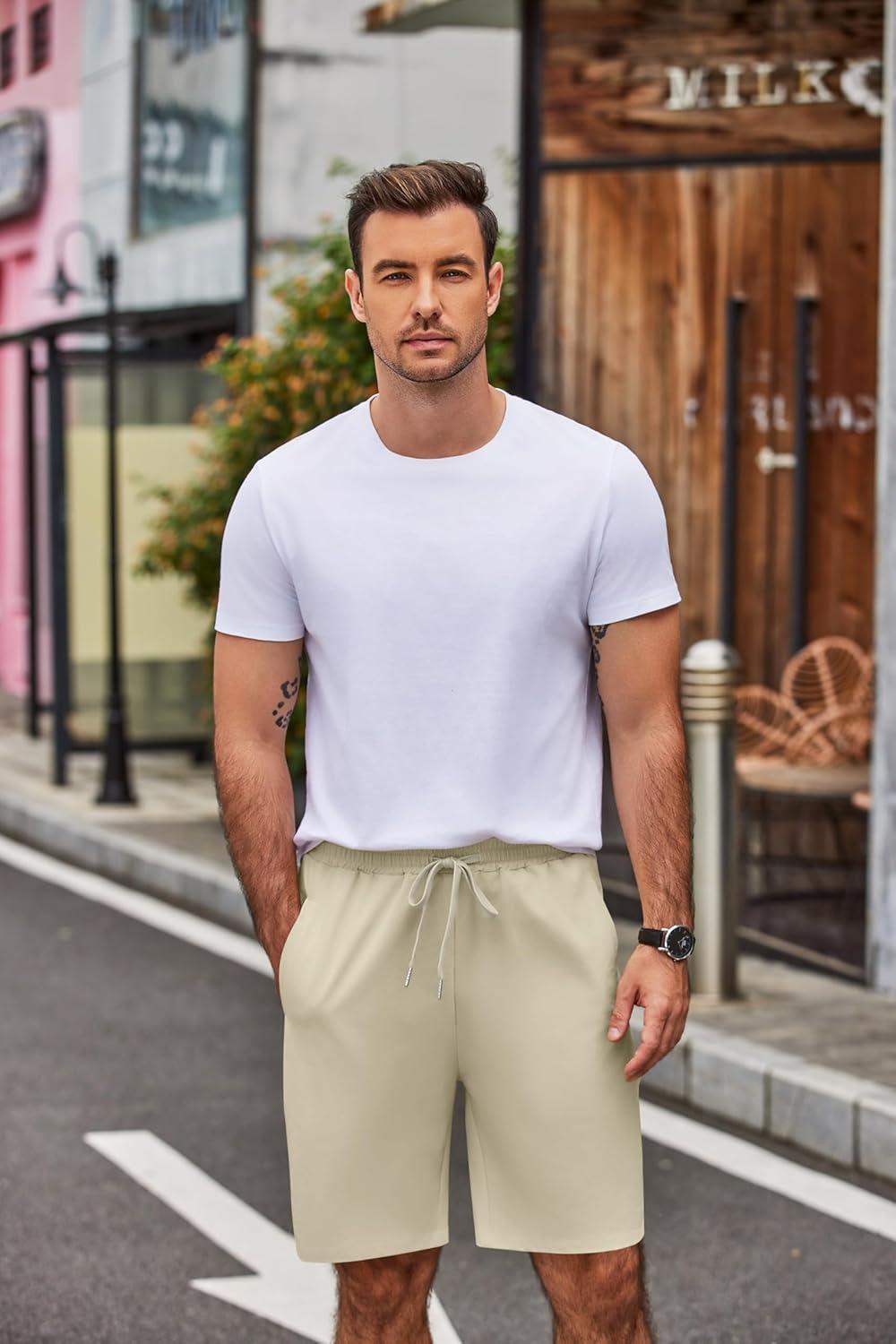 imageCOOFANDY Mens Casual Shorts 9 inch Inseam Elastic Waist Drawstring Short Lightweight Stretch Summer Beach ShortsLight Khaki