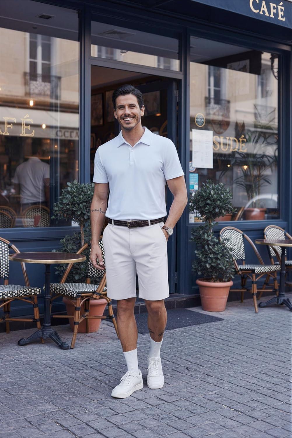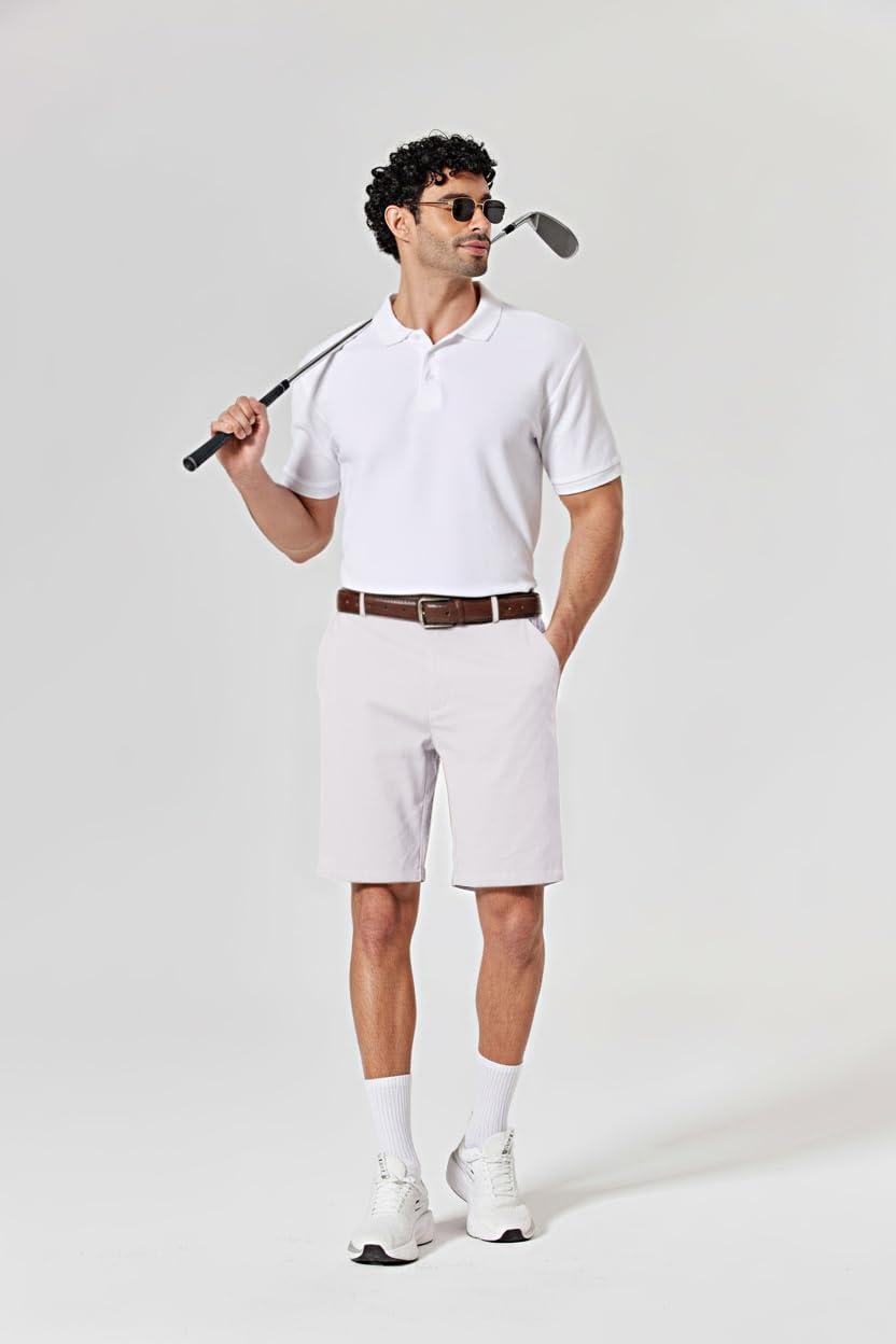 COOFANDY Men’s Casual Shorts Classic-Fit 9″ Chino Shorts Cotton Stretch Golf Short with 4 Pockets(White)