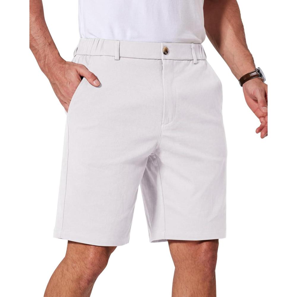 COOFANDY Men’s Casual Shorts Classic-Fit 9″ Chino Shorts Cotton Stretch Golf Short with 4 Pockets(Stone)