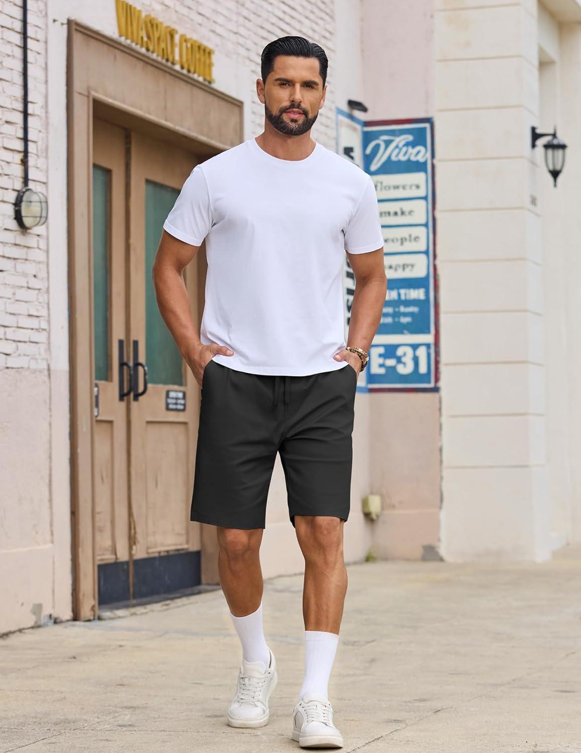 COOFANDY Mens Casual Shorts Cotton Drawstring Elastic Waist Lightweight 9" Chino Golf Shorts Summer Beach Shorts(Black)