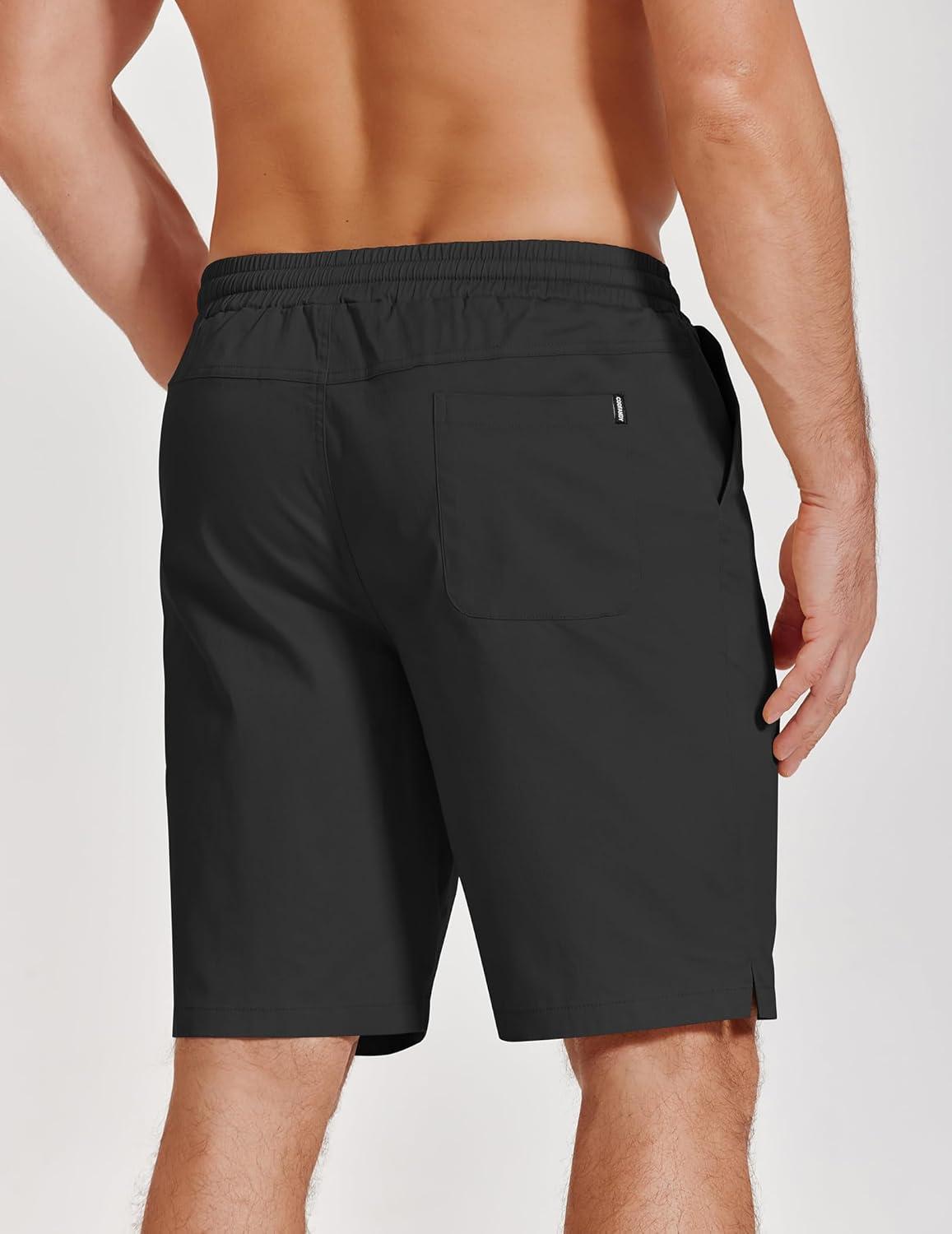 COOFANDY Mens Casual Shorts Cotton Drawstring Elastic Waist Lightweight 9″ Chino Golf Shorts Summer Beach Shorts(Black)
