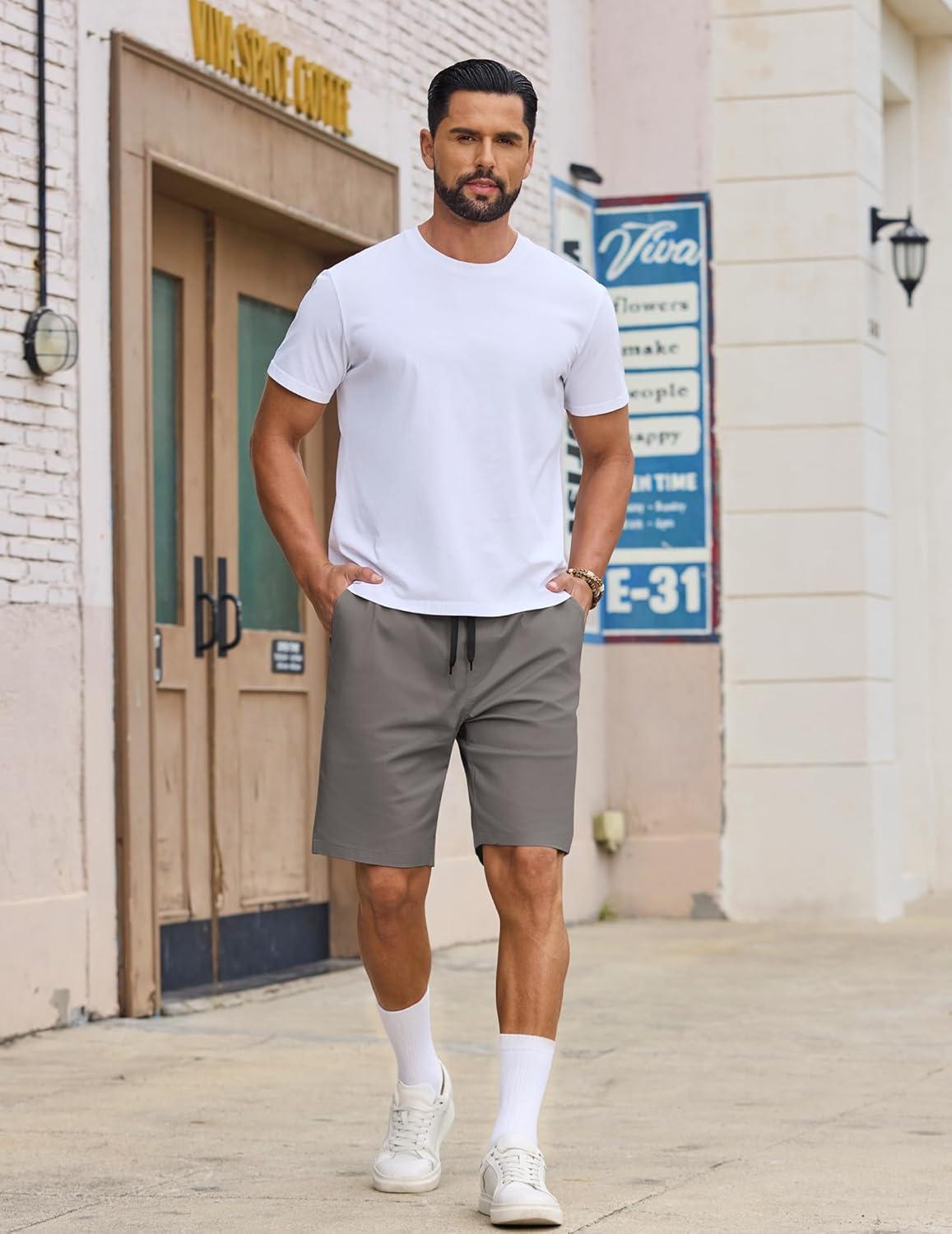 COOFANDY Mens Casual Shorts Cotton Drawstring Elastic Waist Lightweight 9" Chino Golf Shorts Summer Beach Shorts(Dark Grey)