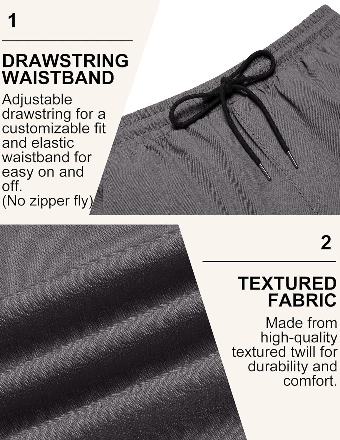 COOFANDY Mens Casual Shorts Cotton Drawstring Summer Shorts Elastic Waist Lightweight Twill Chino Shorts(Dark Grey)