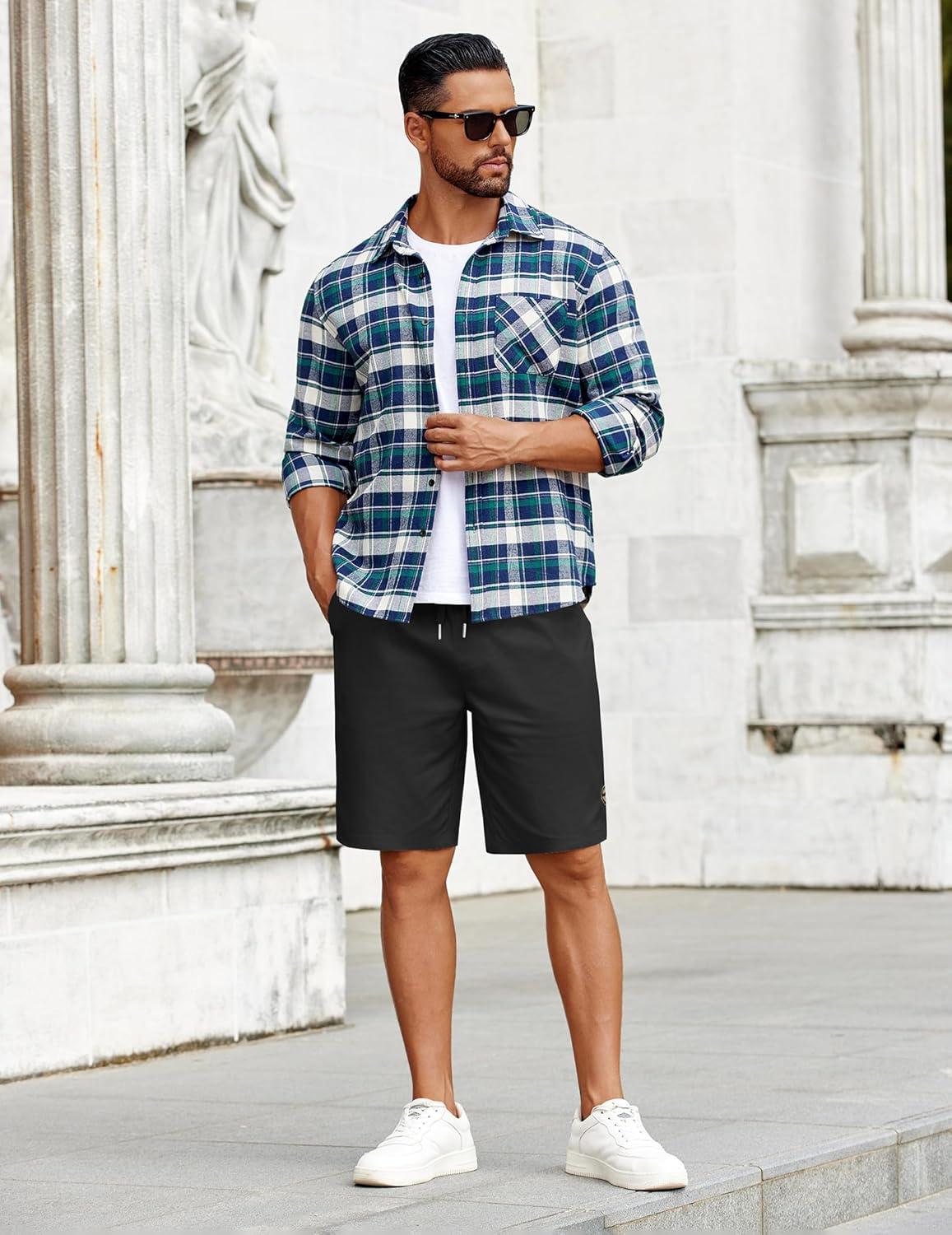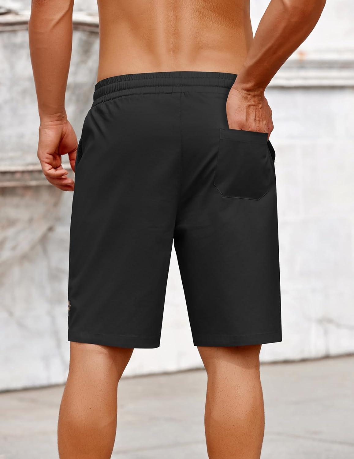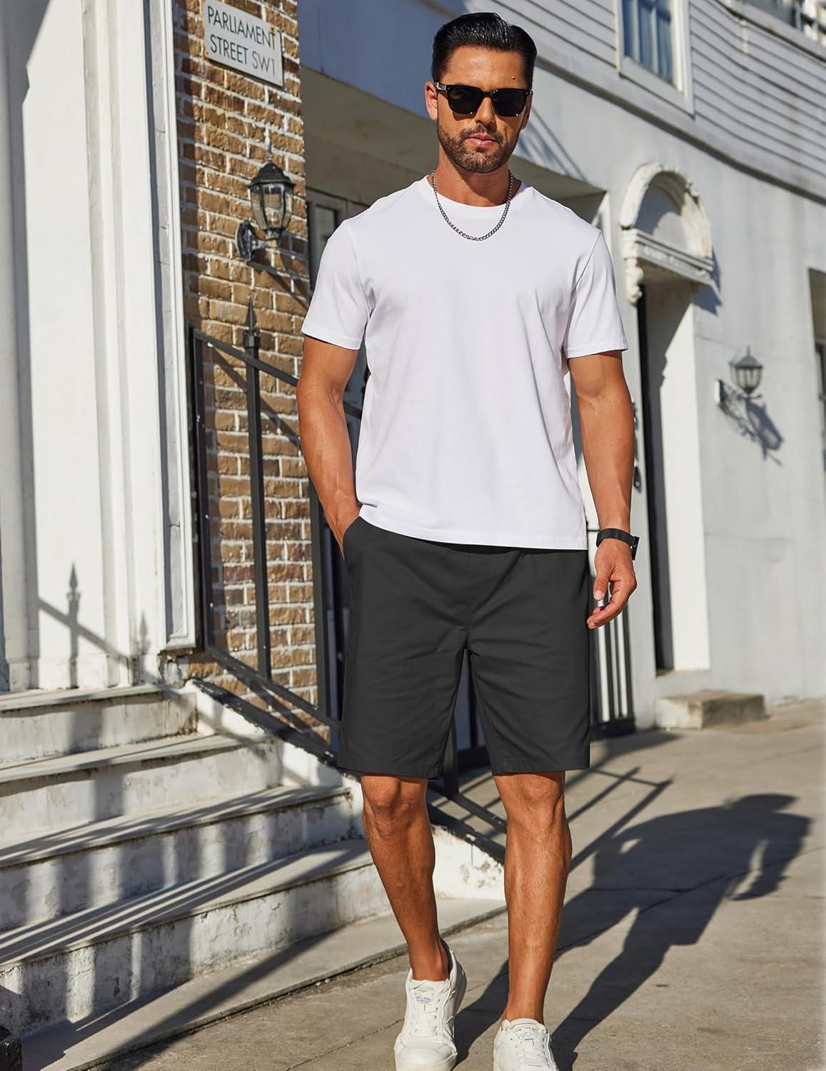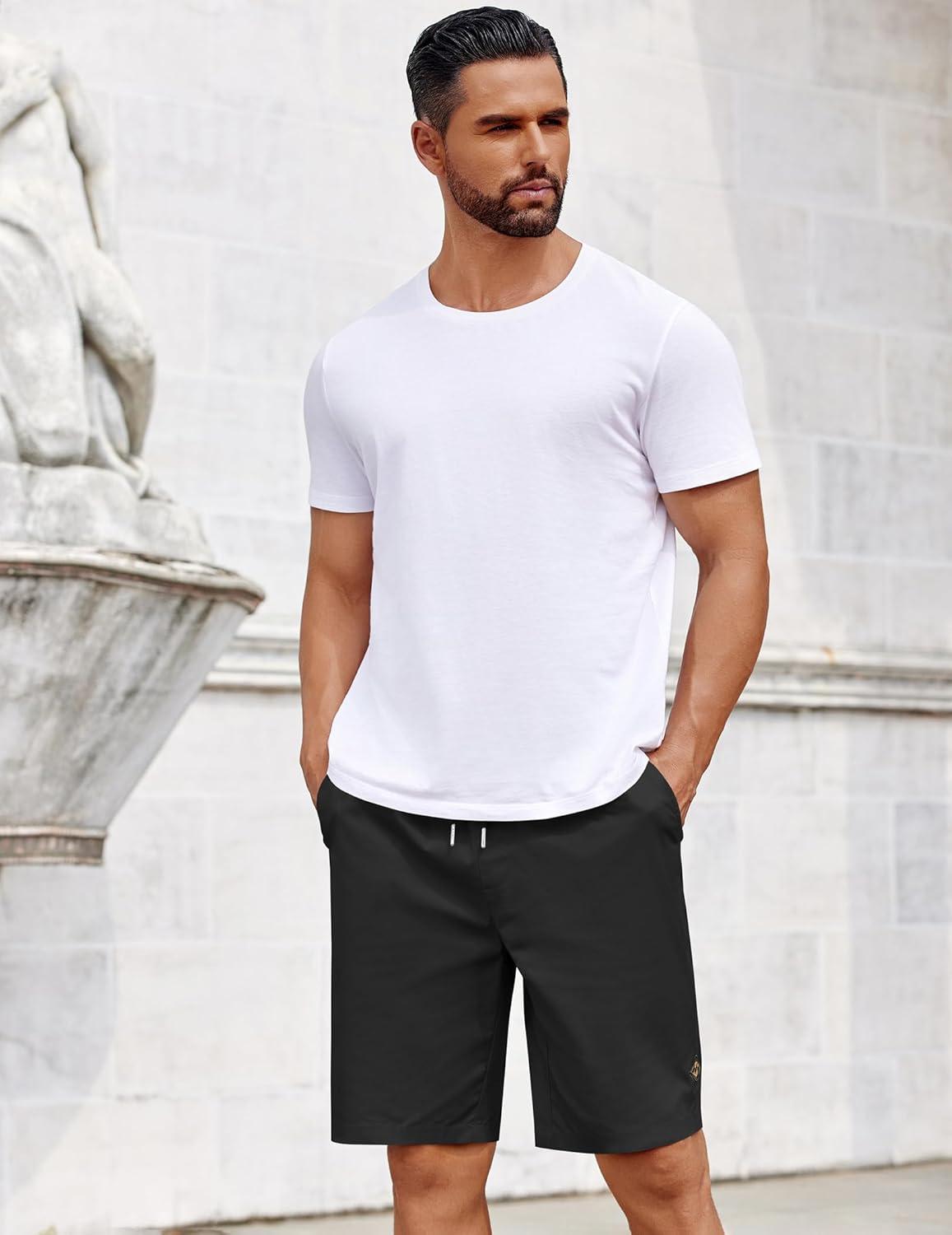 COOFANDY Mens Casual Shorts Cotton Elastic Drawstring Shorts Summer Beach Chino Shorts(Black)